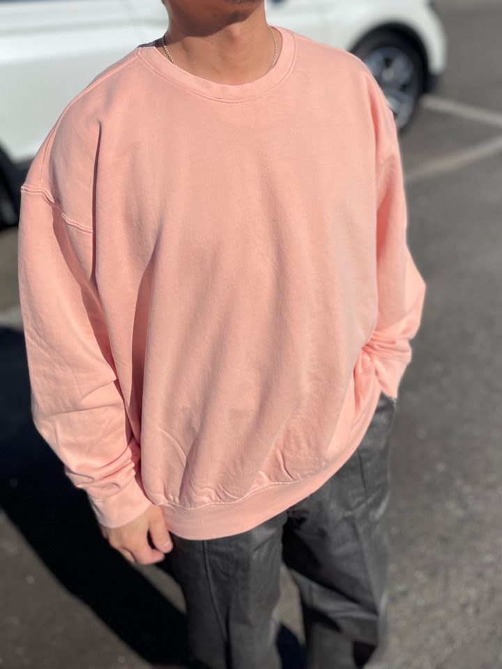 【Unisex】the hommage effort | オマージュ Garment Dye Crew Sweat - PEACH