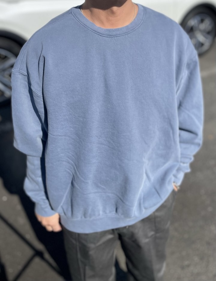 【Unisex】the hommage effort | オマージュ Garment Dye Crew Sweat - BLUE