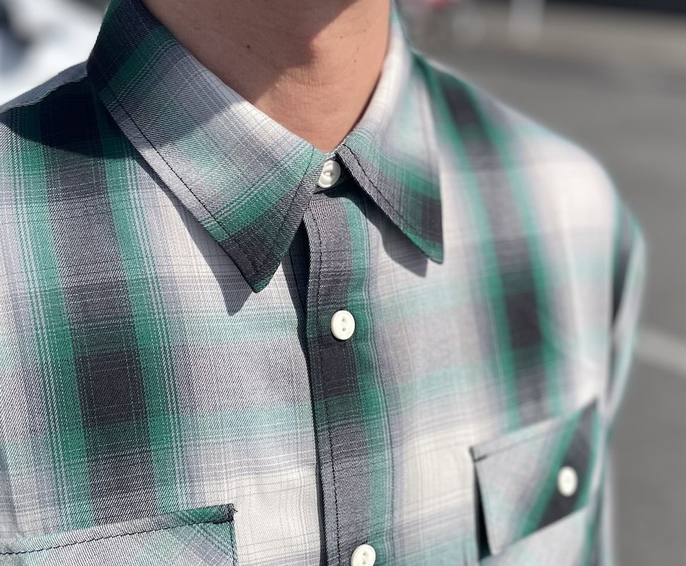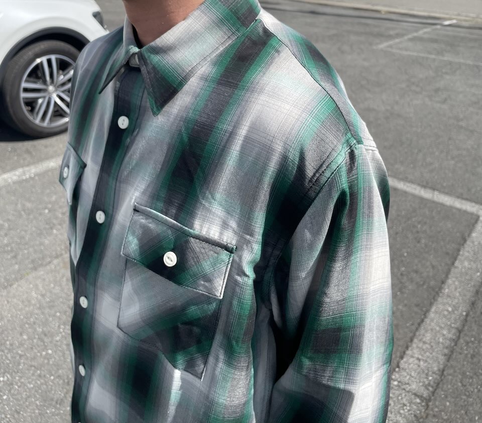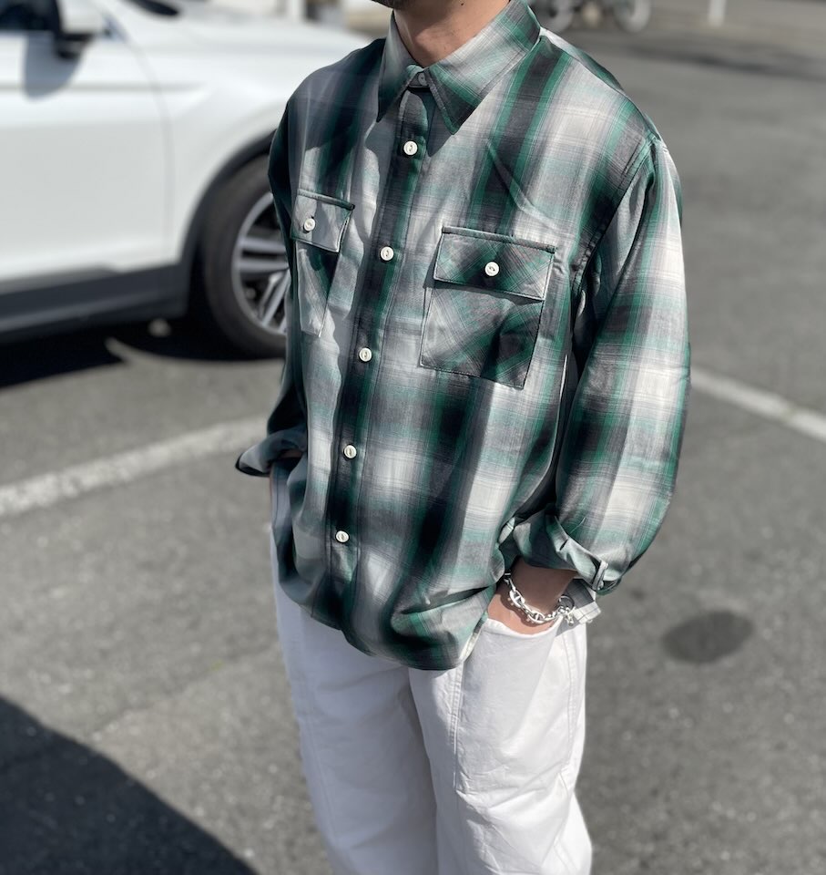 【Men's】BIG MIKE | ビッグマイク Rayon Mix Ombre Check Shirts - WHITE×GREEN×BLACK