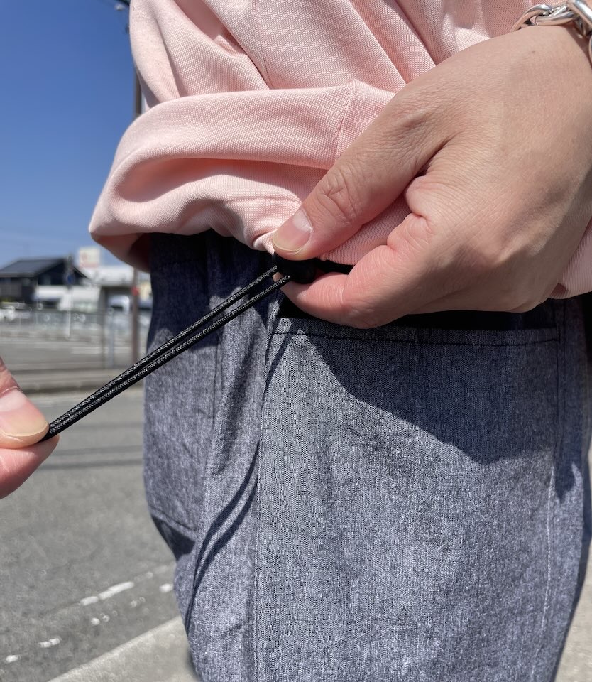 もちろん、裾を絞らずストンと着た際のバランスも考えた着丈になっています。