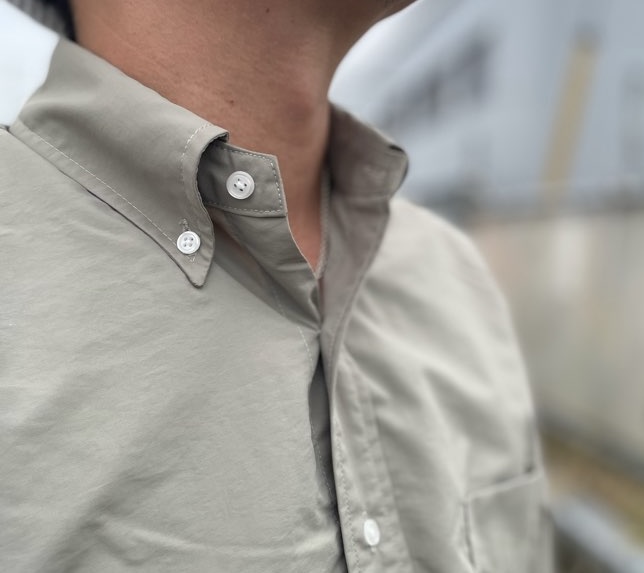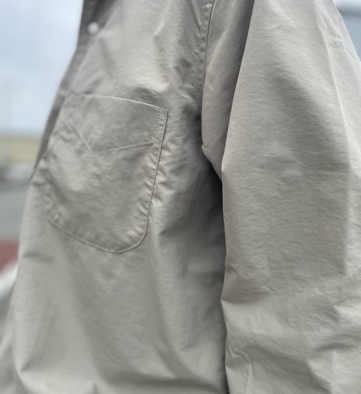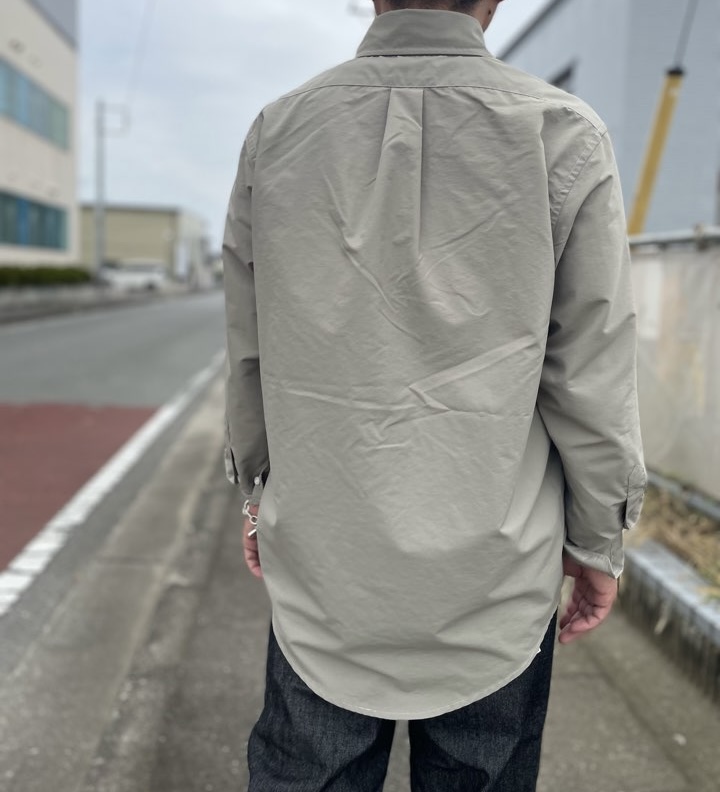 オーセンティックな印象のB.D.シャツをナイロンに落とし込みました。