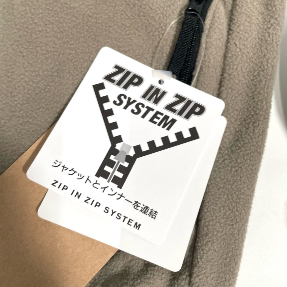 アウターシェルと専用ファスナーを連結して使える、ZIP IN ZIPシステム対応モデル。