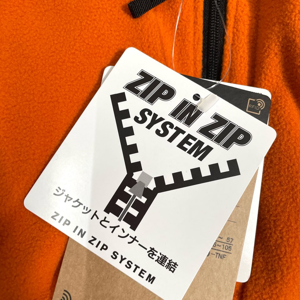 アウターシェルと専用ファスナーを連結して使える、ZIP IN ZIPシステム対応モデル。
