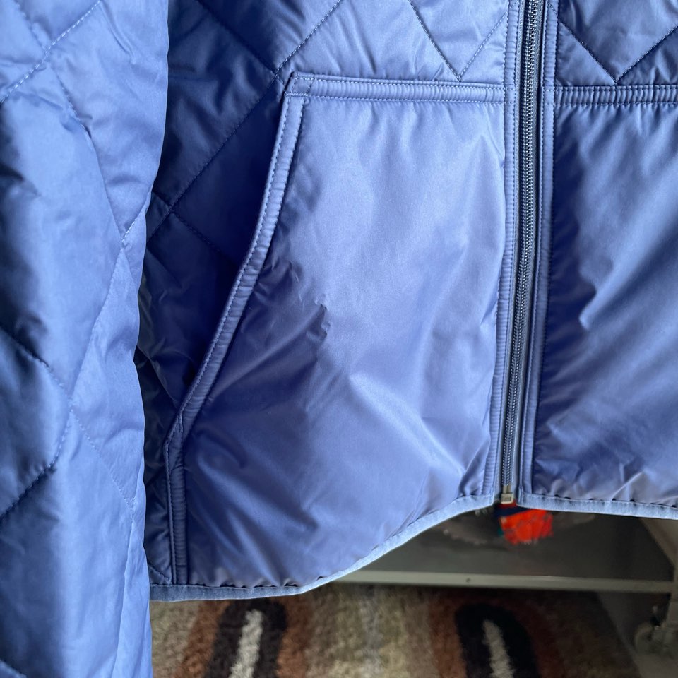 ダイアモンド型のキルトパターンの縫い目を貫通させた構造で、保温性を高めつつかさばりを抑えます。