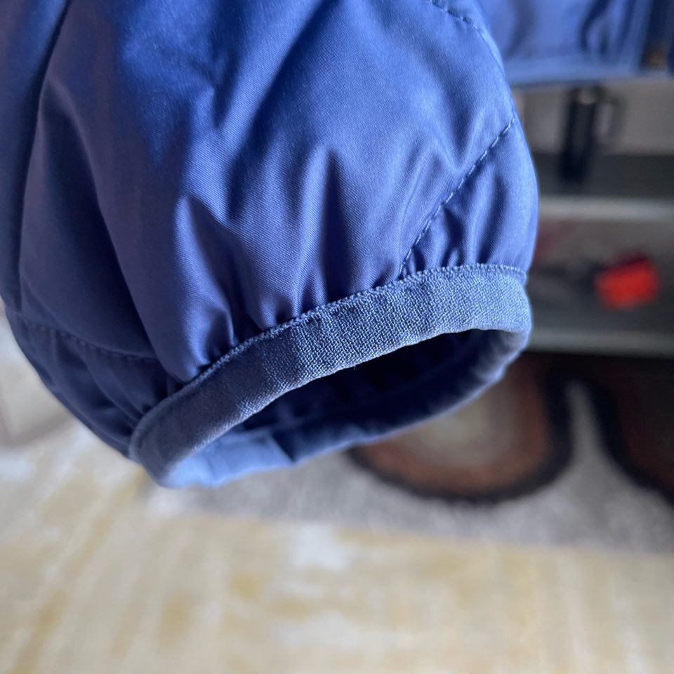 シェルと裏地はリサイクル・ポリエステル100%のタフタで、軽度の水分を弾くDWR(耐久性撥水)加工はPFASを意図的に使用せずに製造。リサイクル・ポリエステル100%の80グラム・サーモグリーンのインサレーション入り