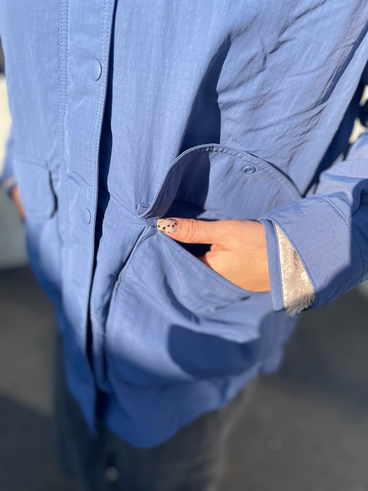 • シェル4.3オンス・リサイクル・ナイロン100%のエコニールのリップストップ。PFASを意図的に使用せずに製造されたDWR(耐久性撥水)加工済み内側のジャケット8.6オンス・リサイクル・ポリエステル100%の両面ハイパイル・フリース。内側のジャケットはブルーサインの認証済み。フェアトレード・サーティファイドの工場で製造お手入れ方法
