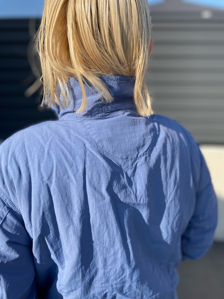 背面の裾を長くさせミリタリーパーカーさながらの雰囲気。