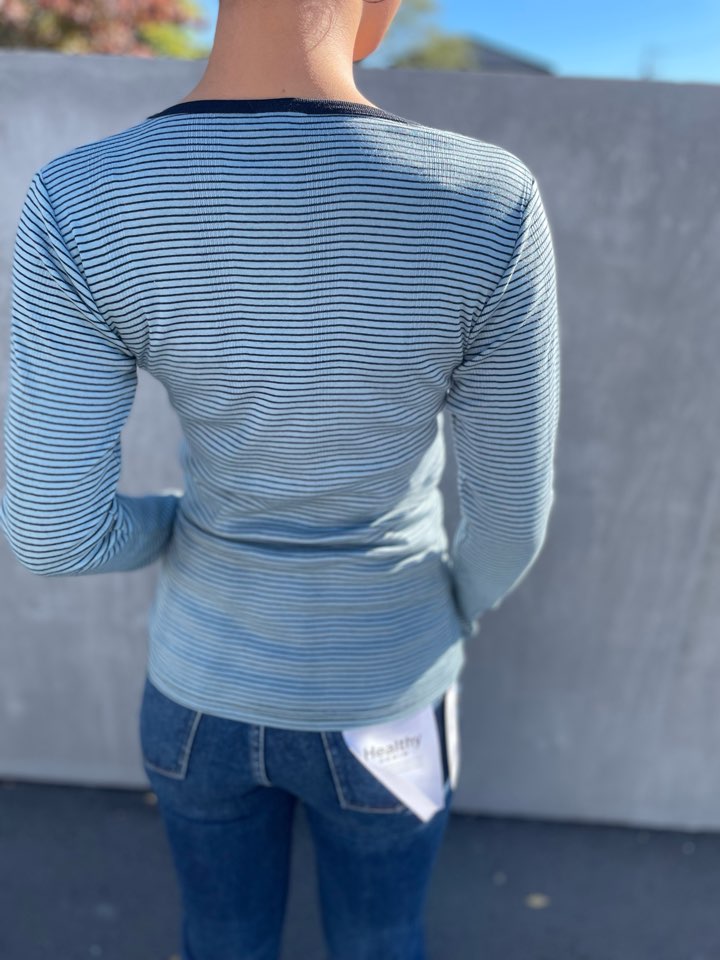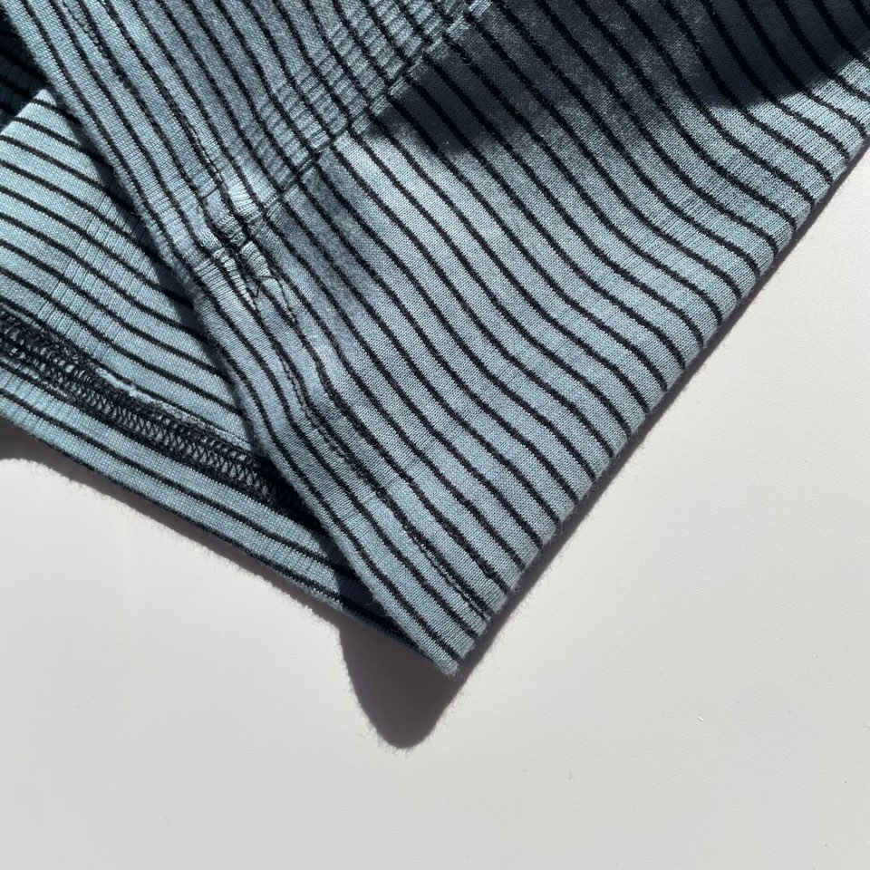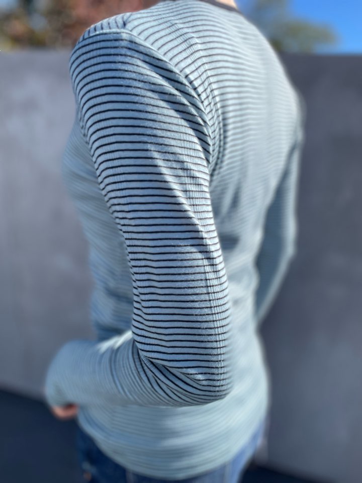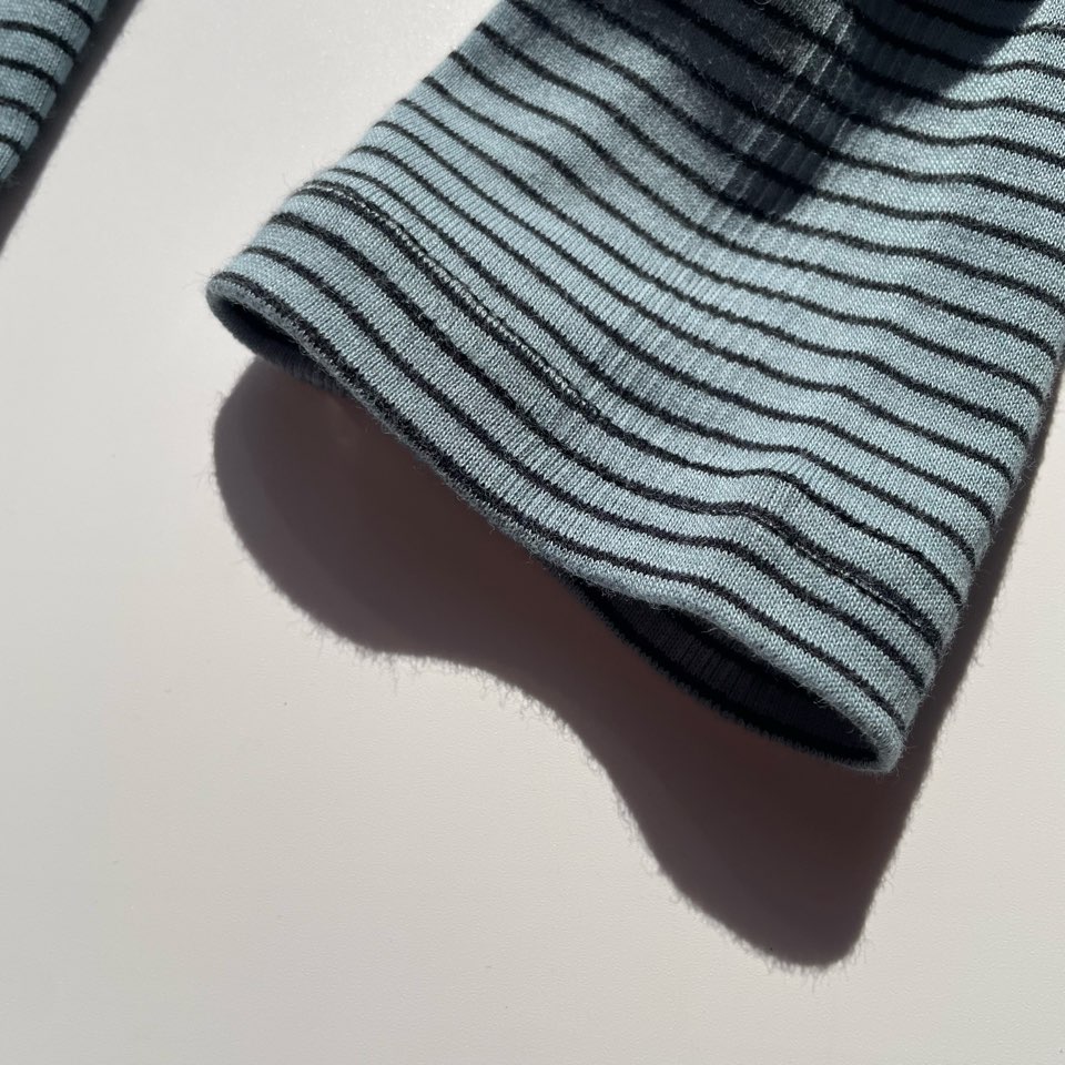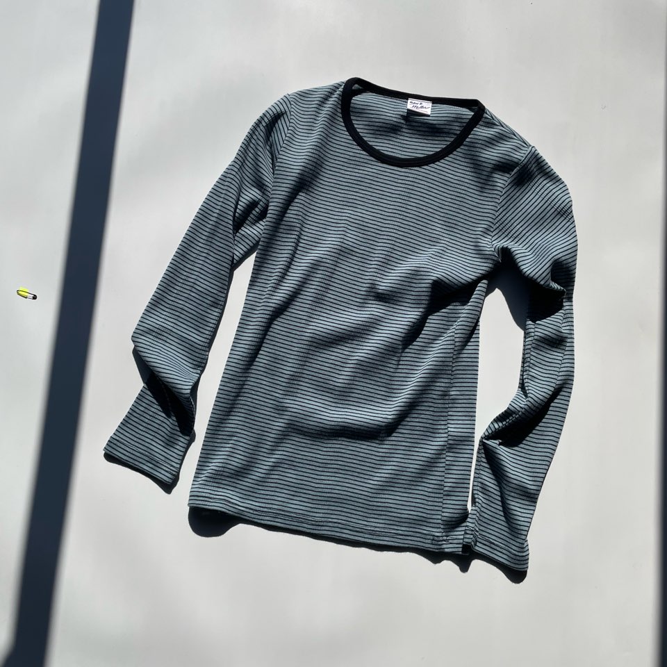 見た目はタイトですが、着用や洗濯を繰り返す度に、フライス部分がゆったりとしてきて1枚でも着られるシルエットに育っていきます。