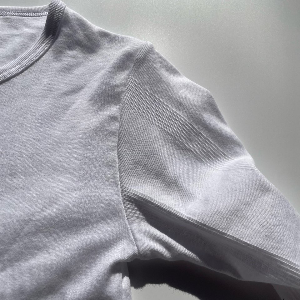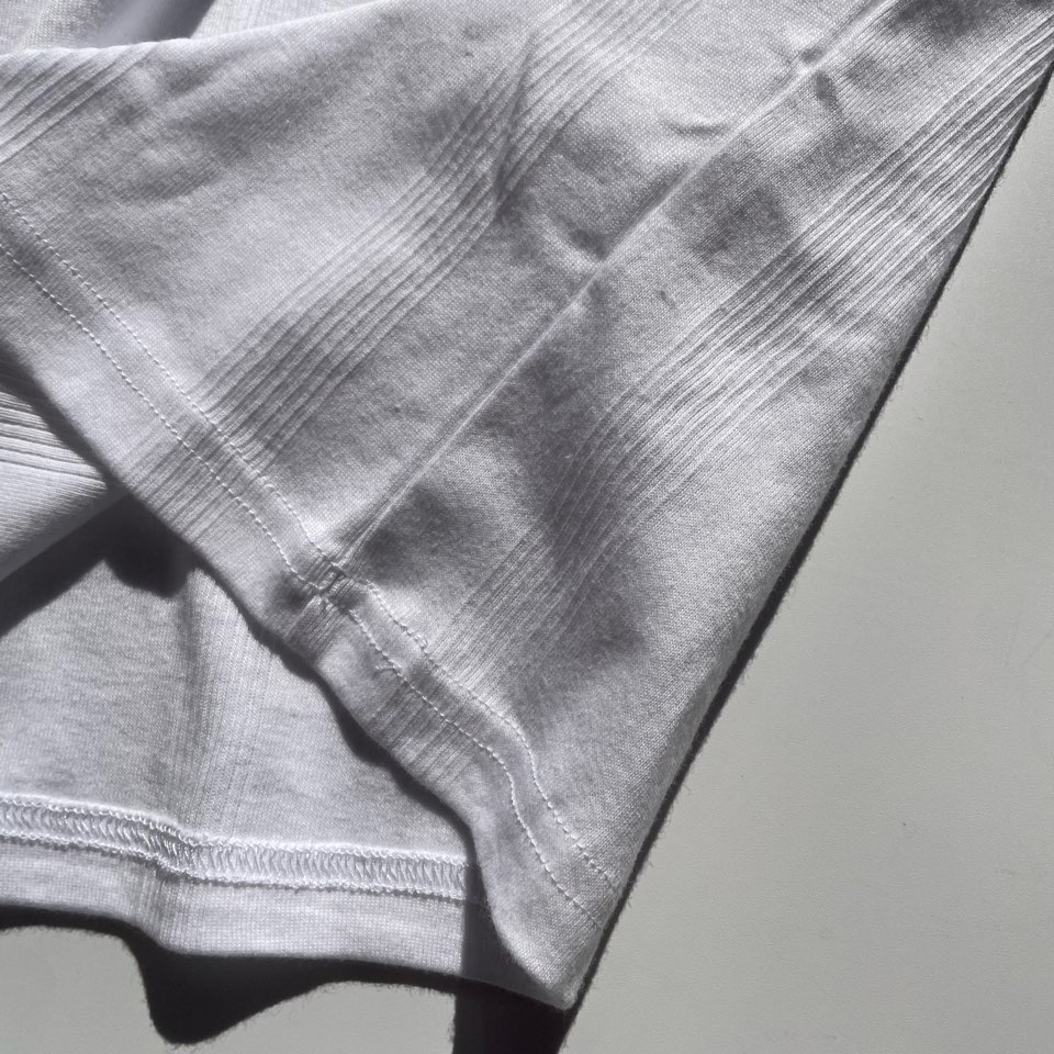 見た目はタイトですが、着用や洗濯を繰り返す度に、フライス部分がゆったりとしてきて1枚でも着られるシルエットに育っていきます。