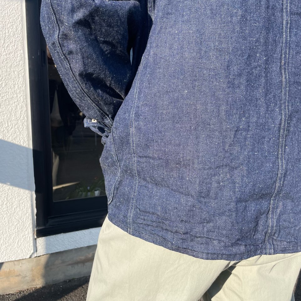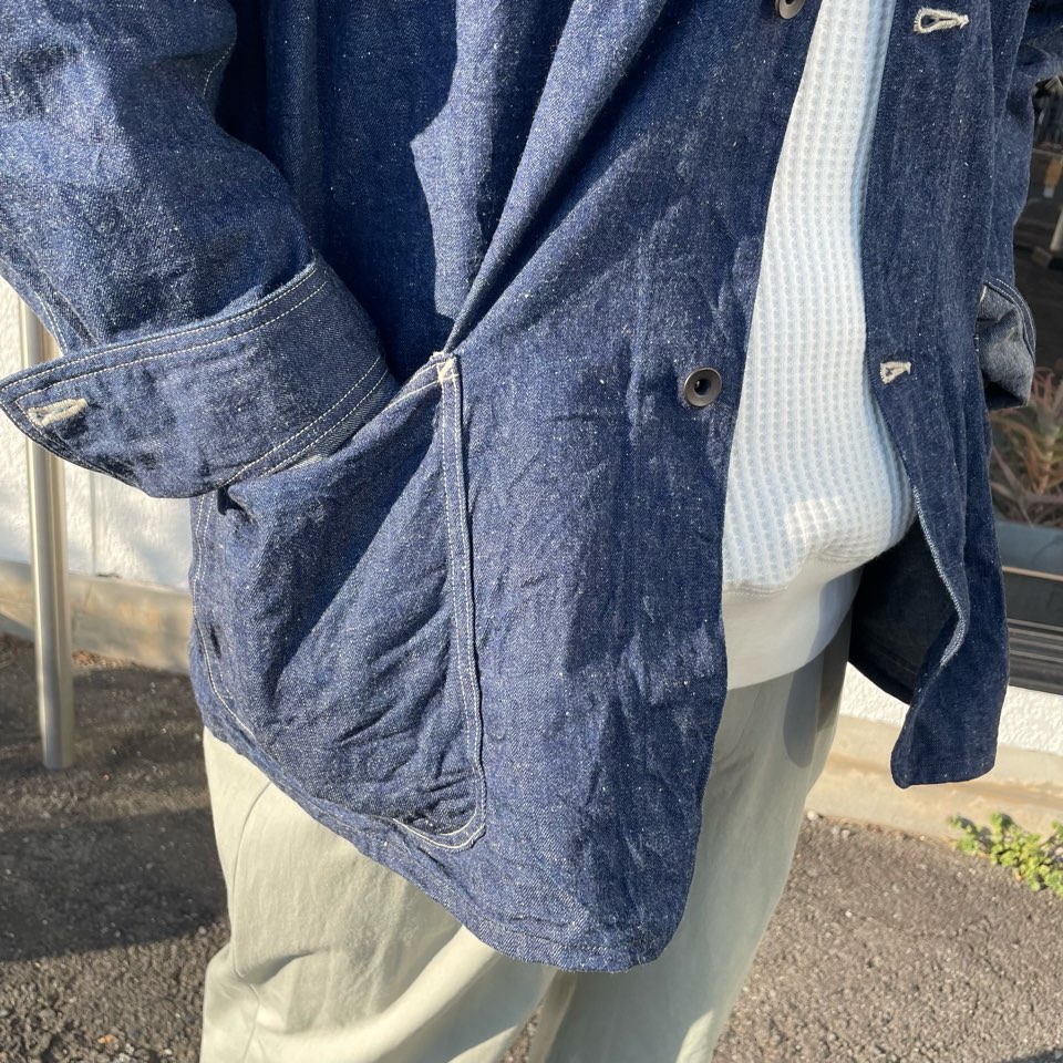 他にないデニム生地はヴィンテージ感と奥行きを出し、表情豊かでデッドストックような生地に。