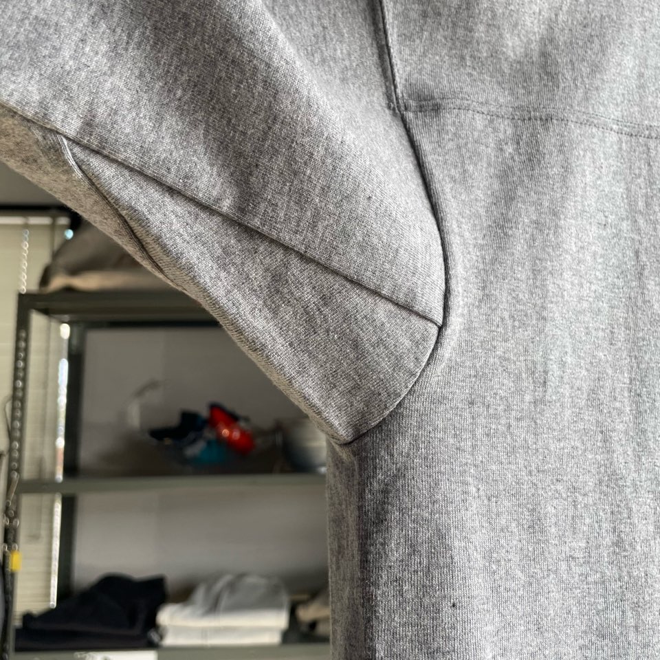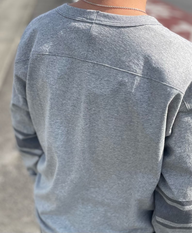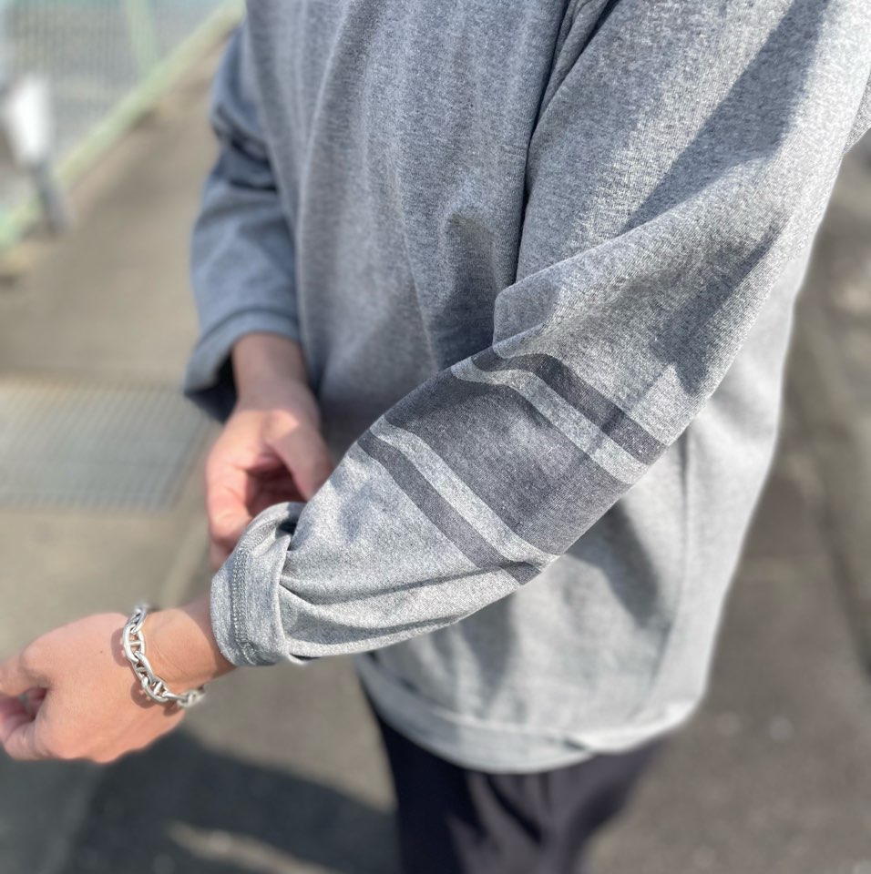 ちなみにこのグレーの袖のラインは染み込みプリント。