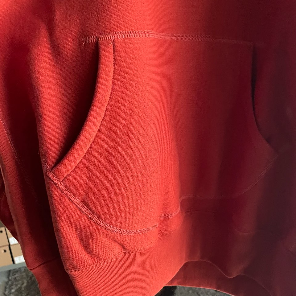通常カンガルーポケットは裾リブに巻き込み縫製されるのがほとんどですが