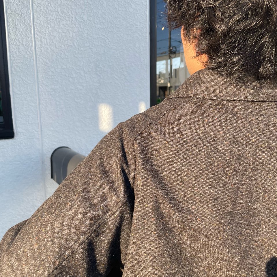 尾州にて紡績糸を高密度に打ち込んだ、ウールカラーネップ糸を使用したホームスパン。