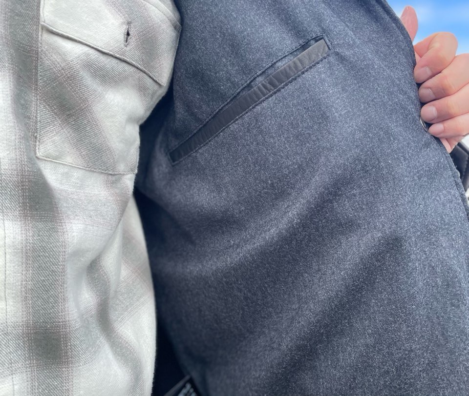 裏身頃には起毛したウールフランネル、下にも着込めるサイジングなので冬場のアウターとしてもしっかり機能します。
