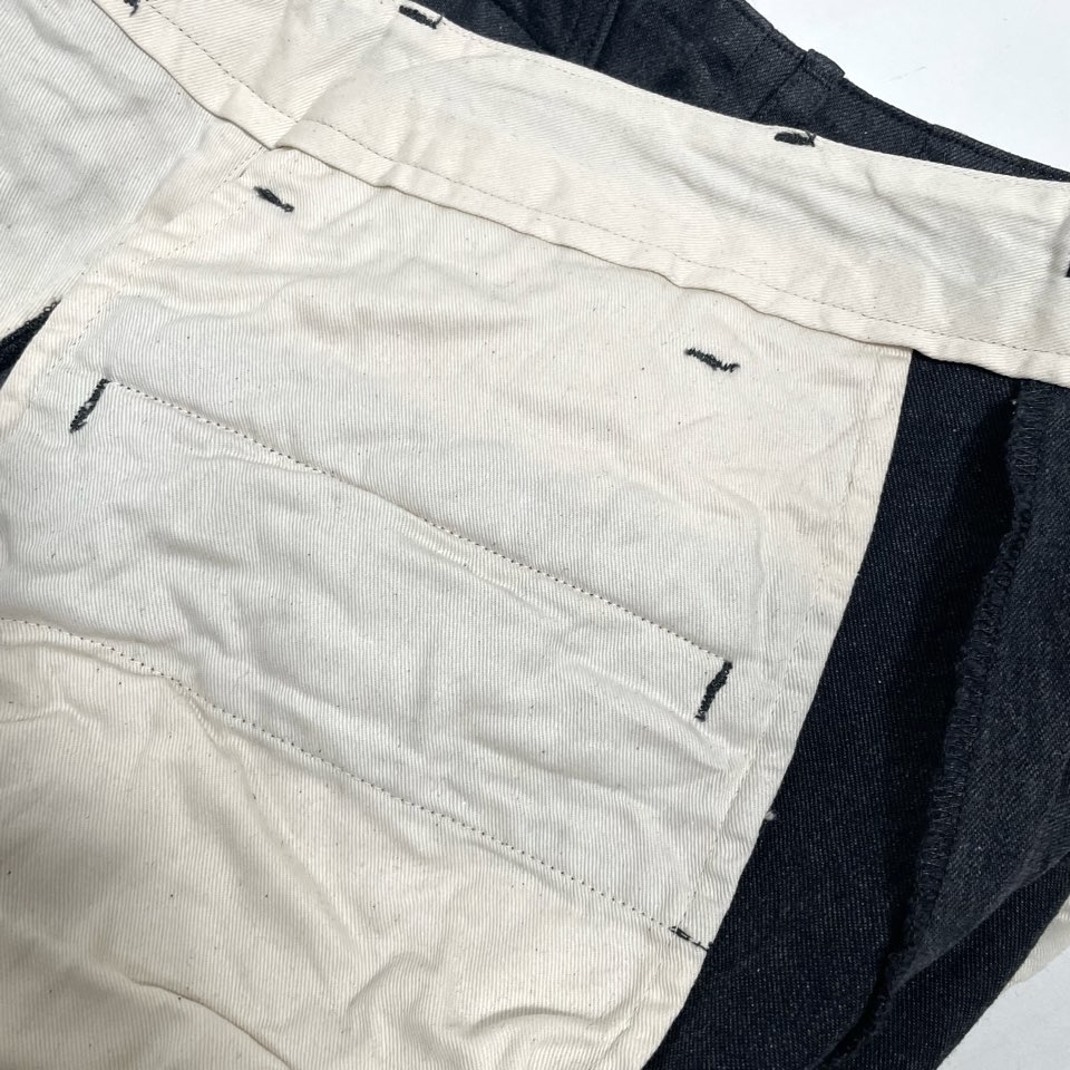 巻き縫いは使用せず、尻くいや脇、内股はすべて割り始末で縫製しています(※脇のみセルビッチを使用)