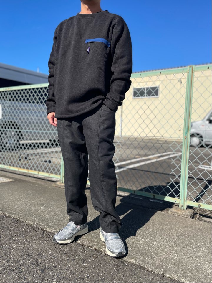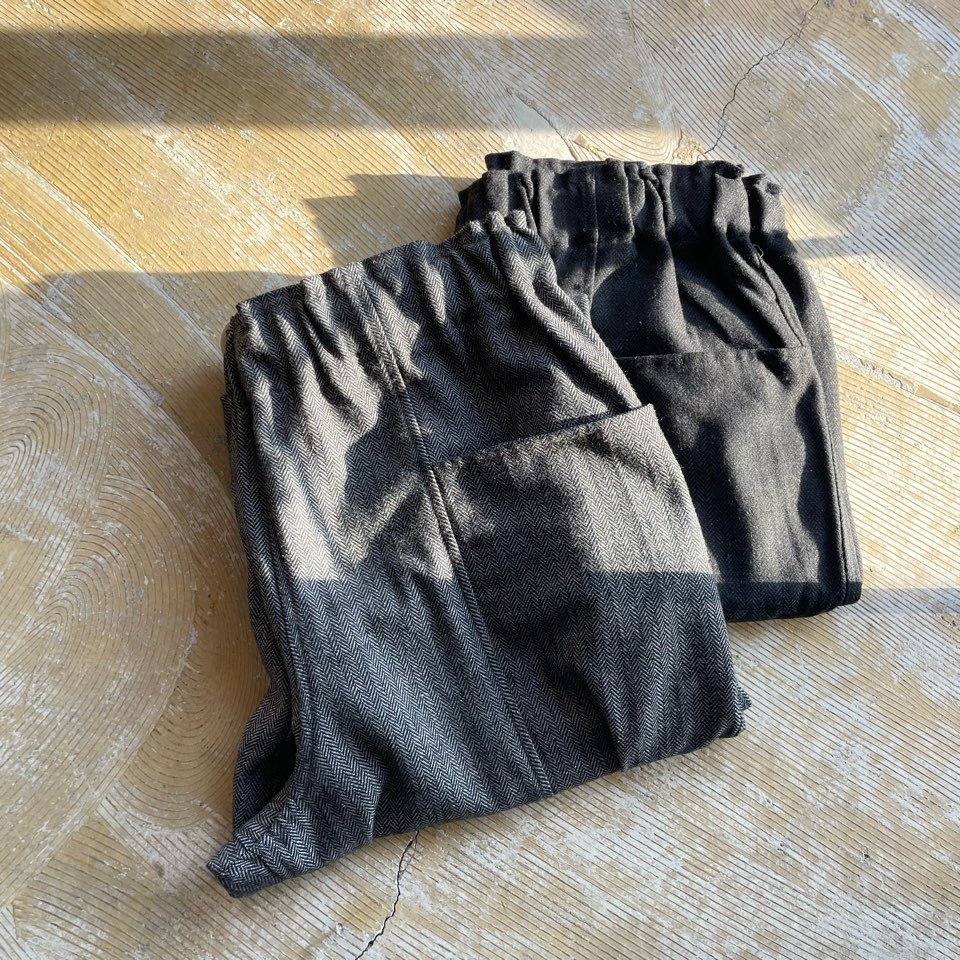 本来、コレ系の秋冬パンツってウール物が多いですが、ポリやウール、レーヨンなんかも混ぜて軽く仕上げてます。
