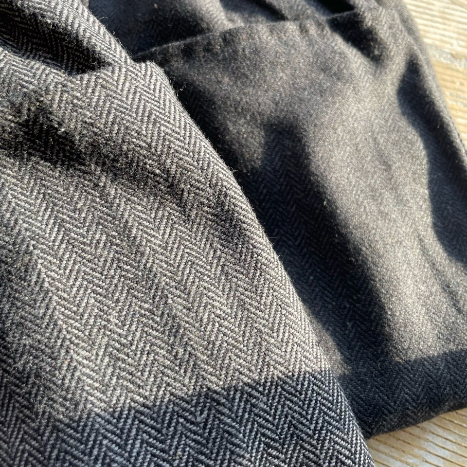 ヘリンボーンの落ち着いたトーンのチャコールグレー