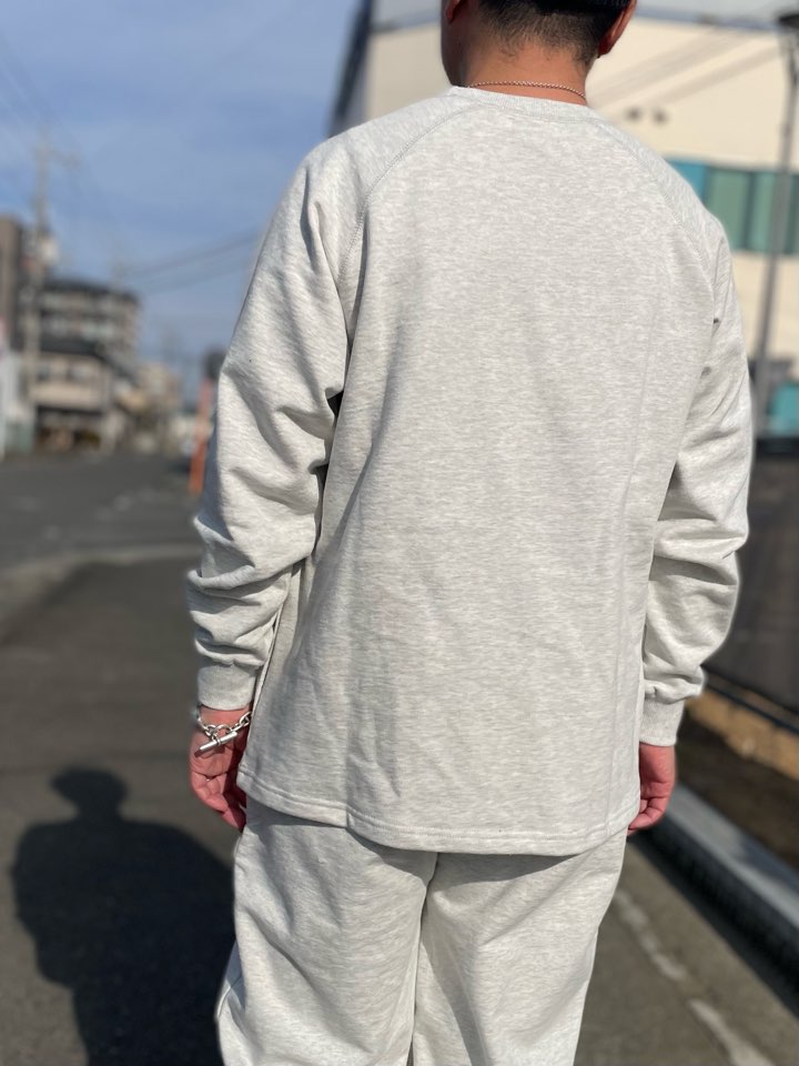 スウェットには珍しくラグランスリーブに両サイドポケット。