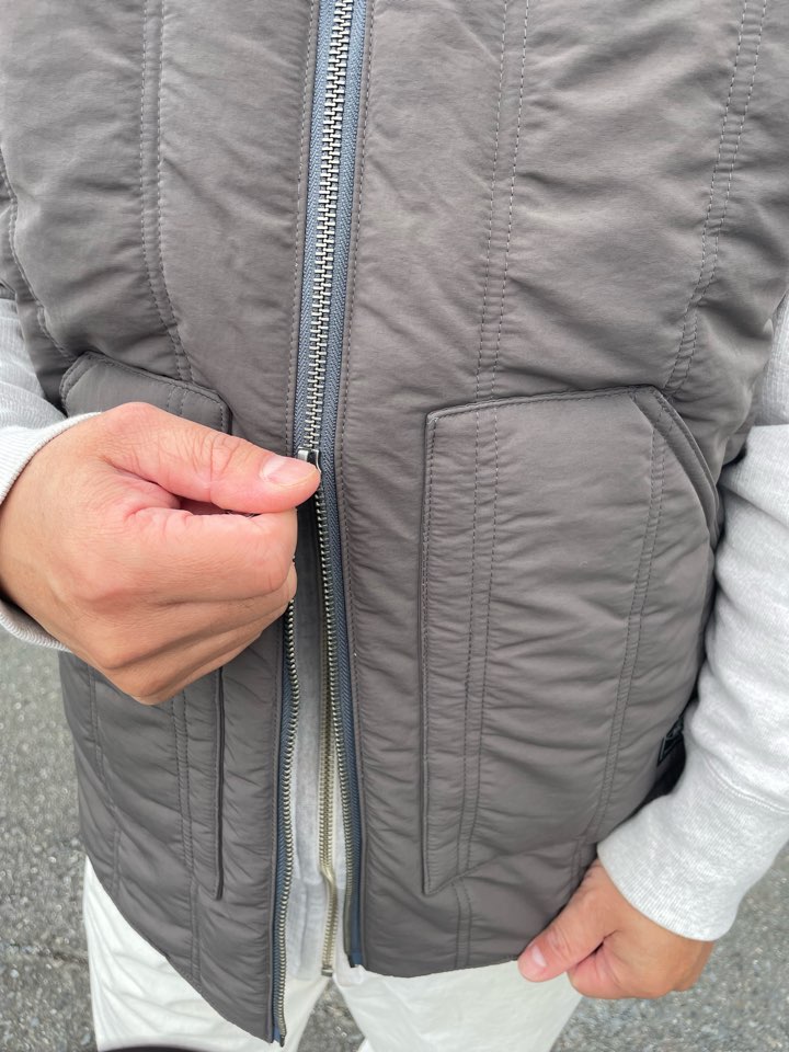 縦にステッチの入ったスマートな印象のキルティングベスト。
