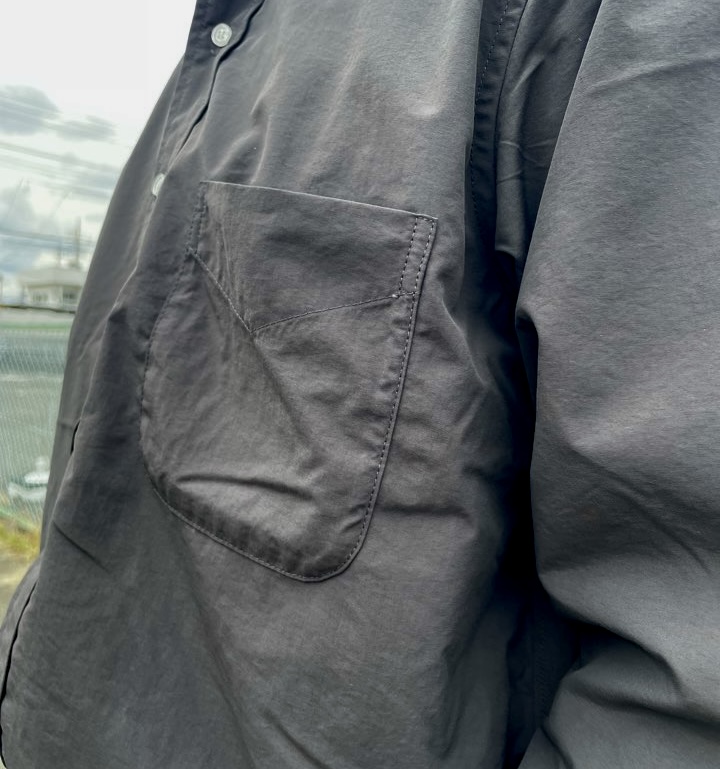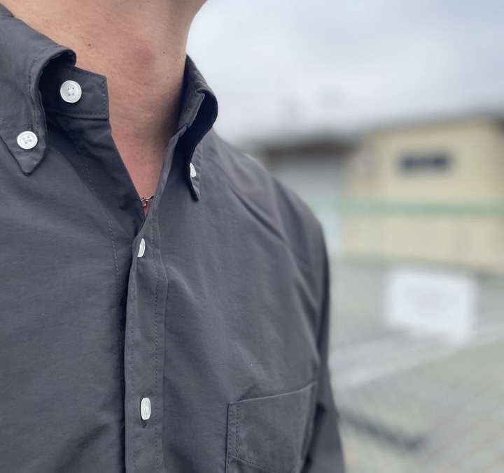 オーセンティックな印象のB.D.シャツをナイロンに落とし込みました。