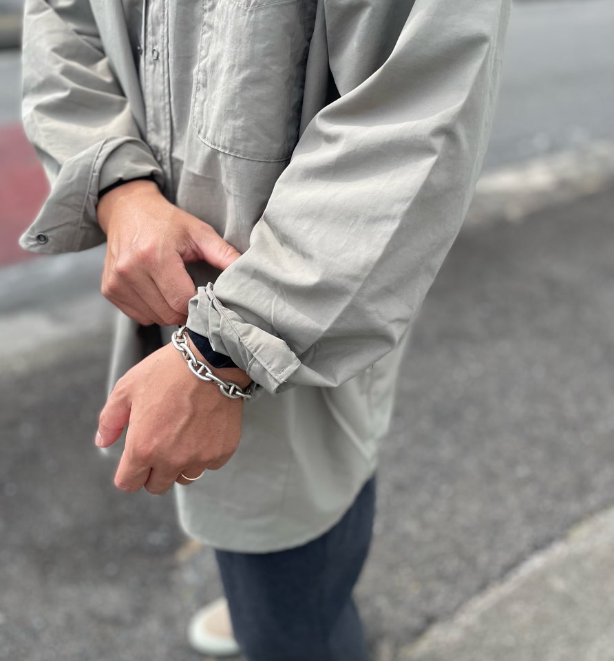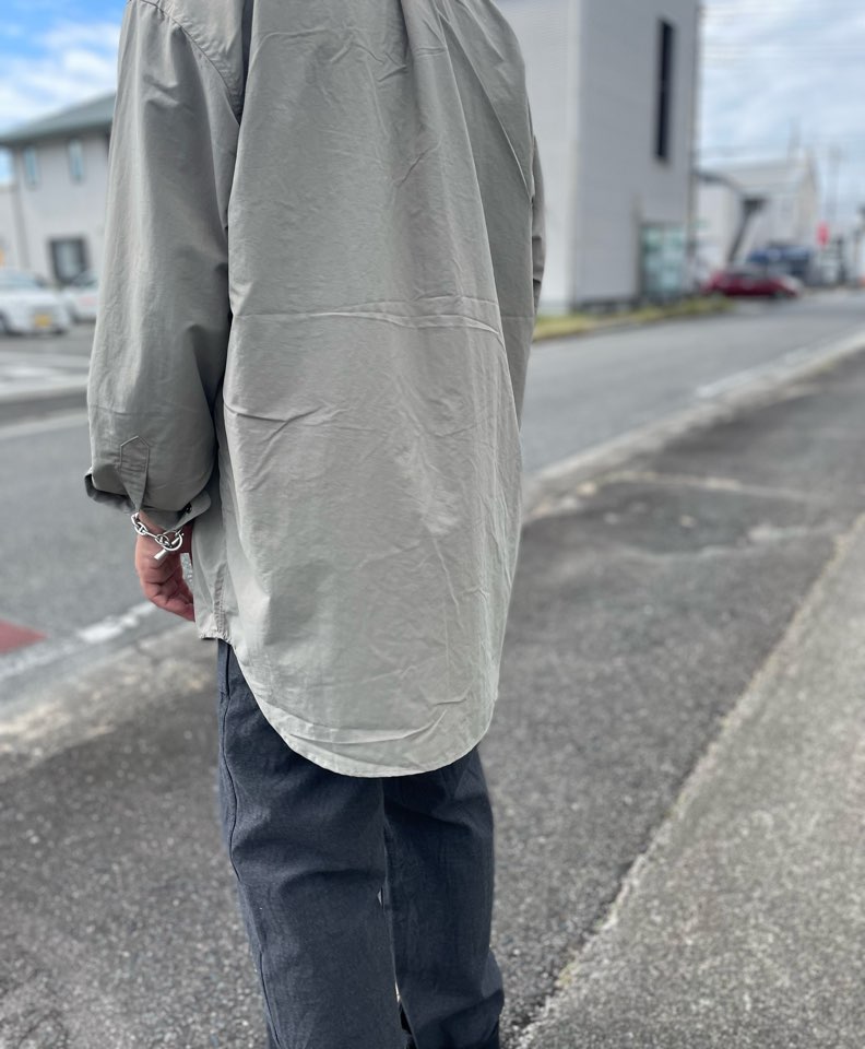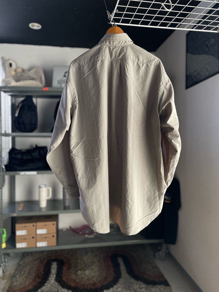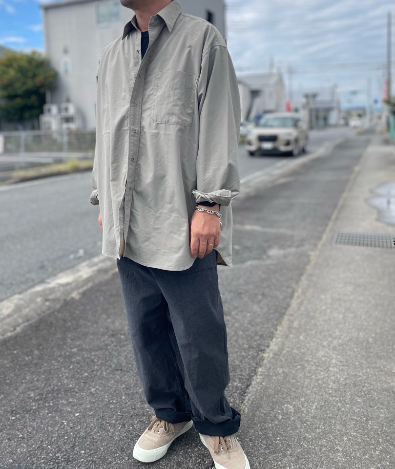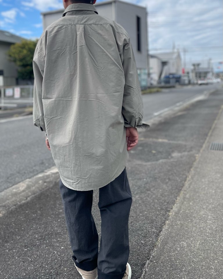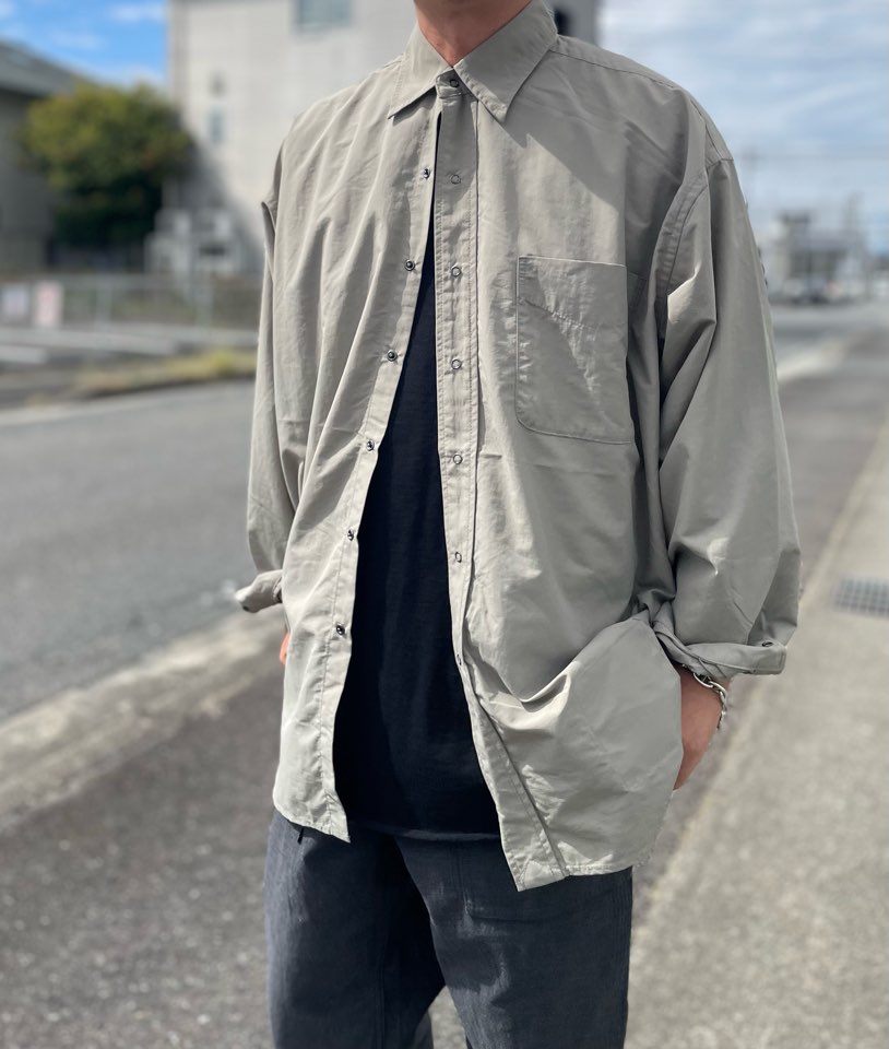 仕様も襟はレギュラーカラー、ボタンはスナップボタンと細かいディテールは変わりゆったりシルエットなので