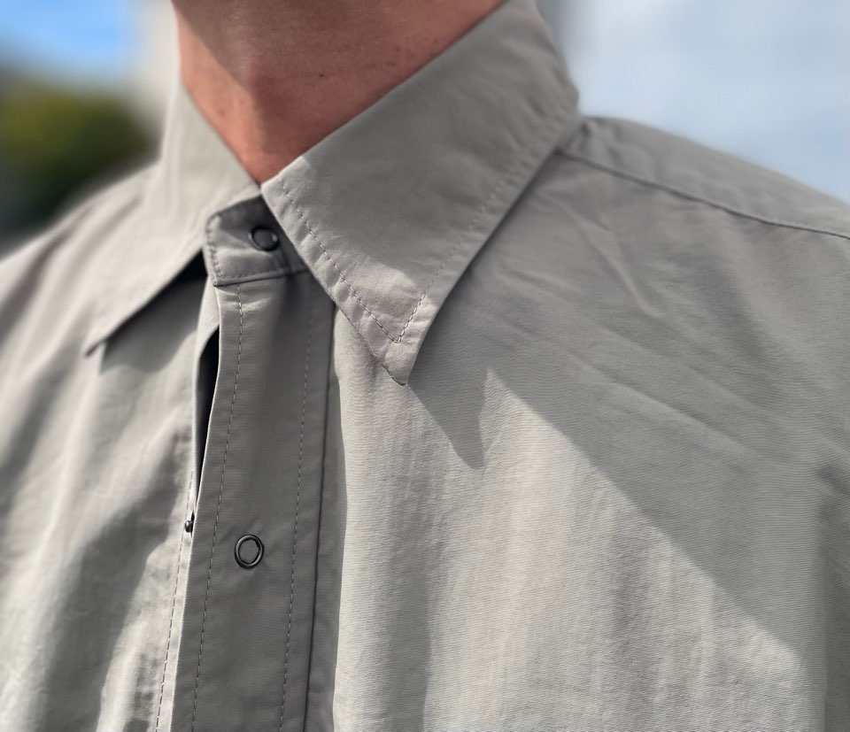 速乾性、UVカット機能を兼備したSUPPLEX NYLONで作られたLong Sleeve Big Shirt。