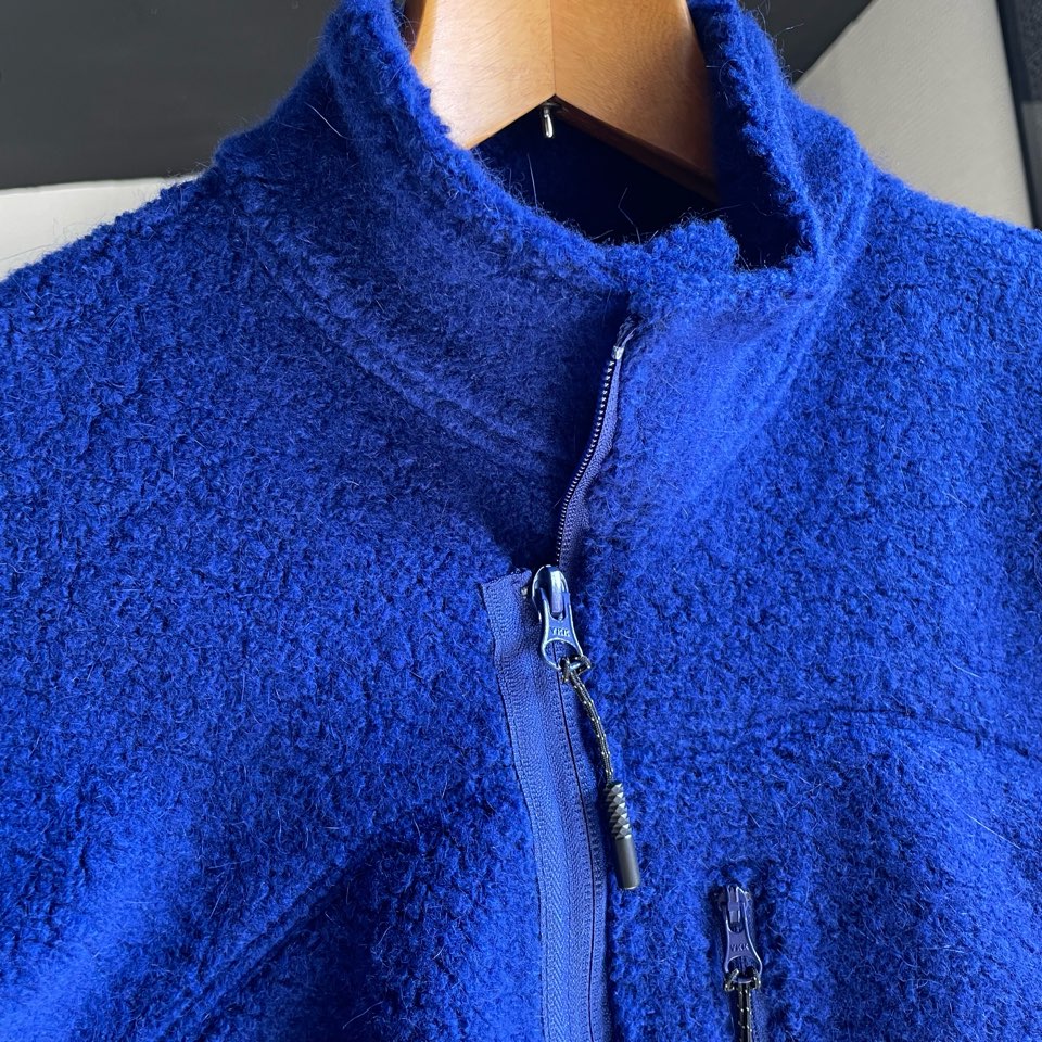 日本に3台しかない希少な丸編み機を使いゆっくりと空気を含んだようにふっくらとしたウールパイル。