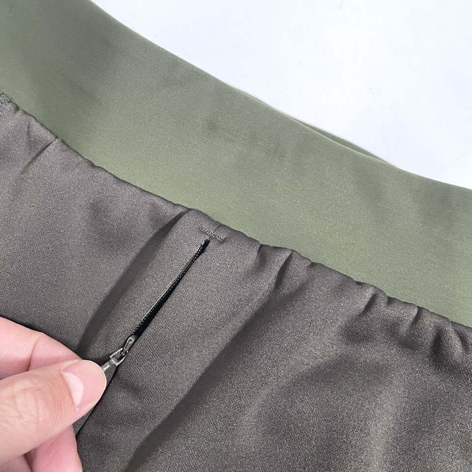 股下のガゼット部分から裾にかけて内側の生地を伸縮性の強いポリエステルに。