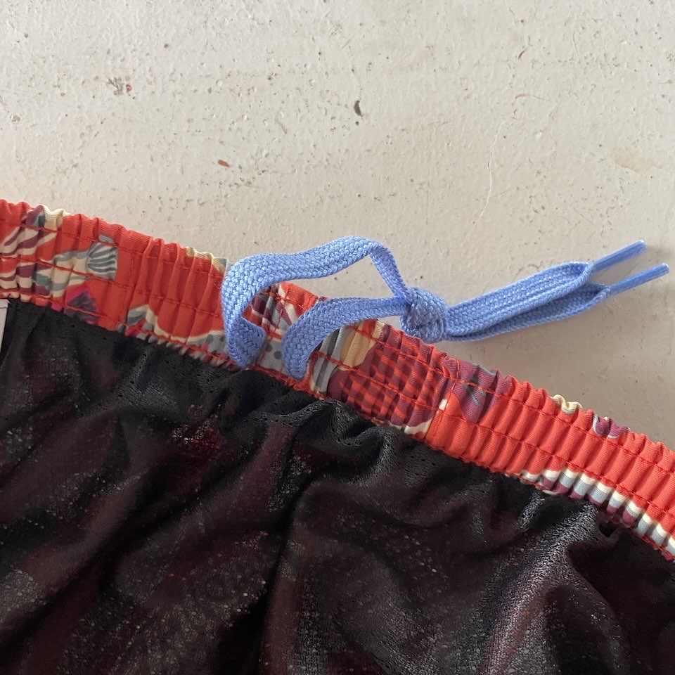 内側にフィットの微調節が可能なドローコードを備えた伸縮性ウエストバンド