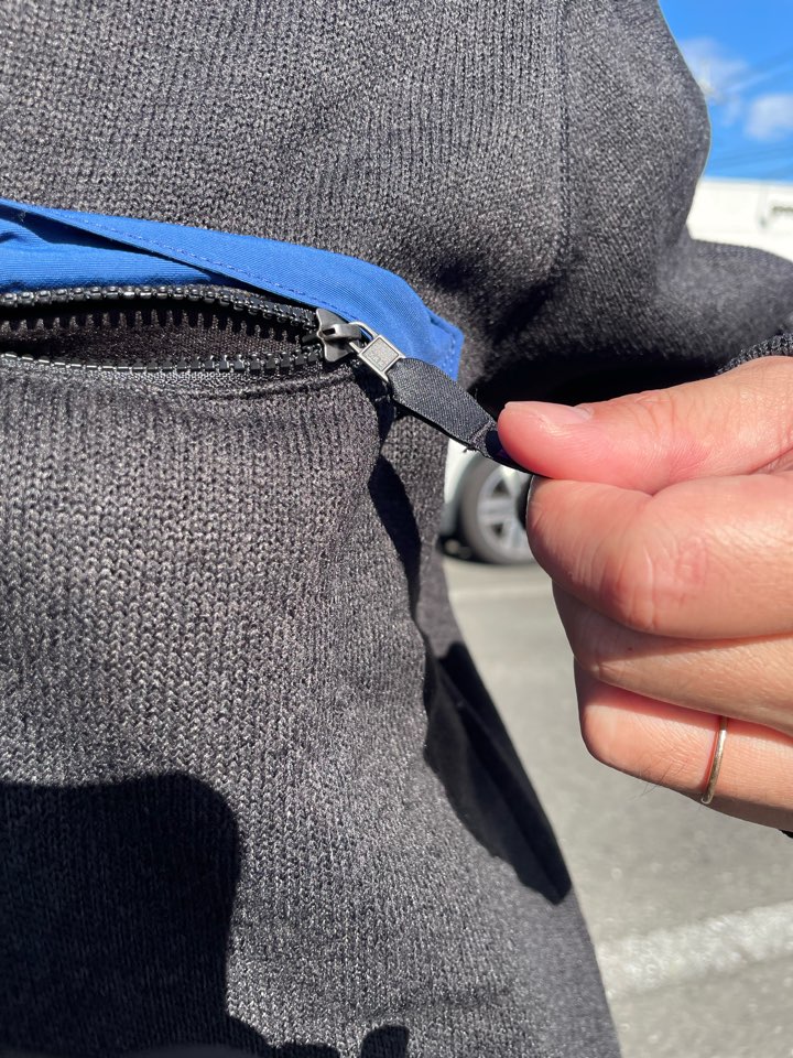 貴重品をしっかりと手近に収納するジッパー式ポケットが左胸に1つ