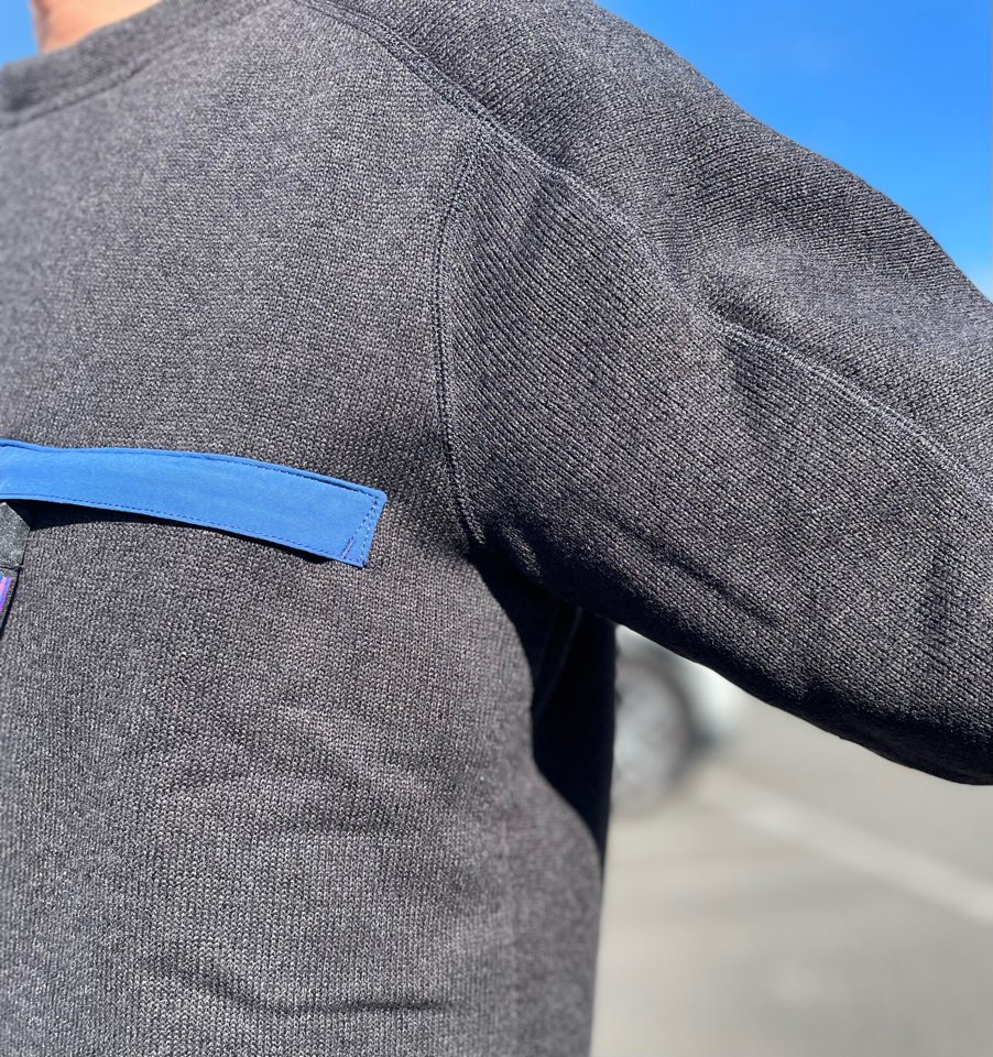 本体の素材は温かくソフトながら丈夫なリサイクル・ポリエステル100%のニット・フリース。ポケットは漁網をリサイクルしたネットプラス・ポストコンシューマーリサイクル・ナイロン100%