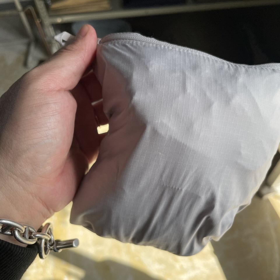 左胸のジッパー式ポケットにはジャケット本体を収納可能で、使わないときには携帯も容易