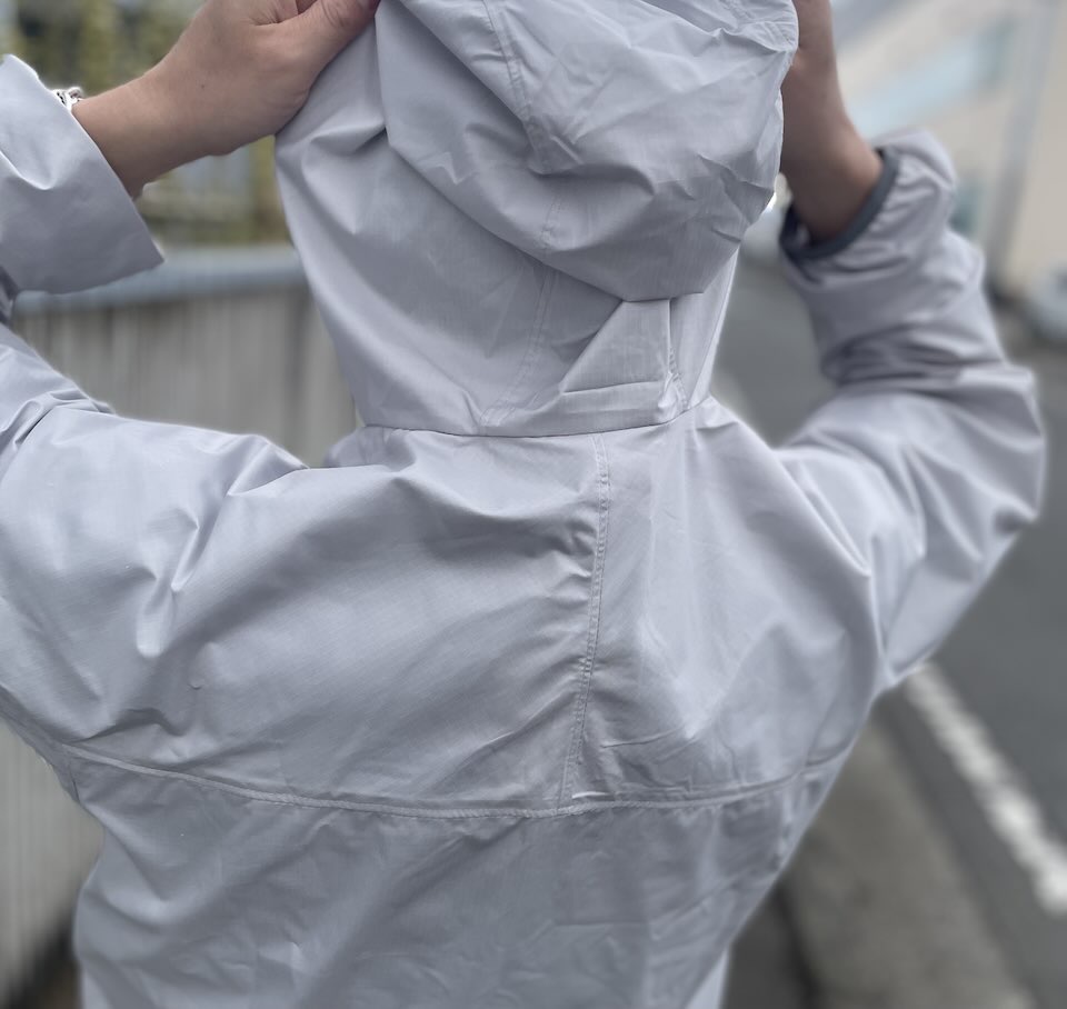 裾はドローコードで調整でき、風の侵入も防げるしシルエットも今っぽくできます。