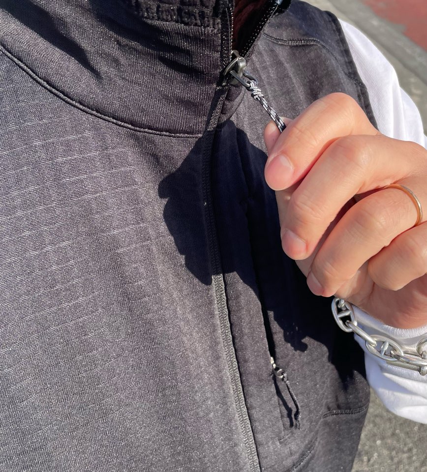 左胸のジッパー式ポケットは通気性に優れたメッシュの裏地を使用