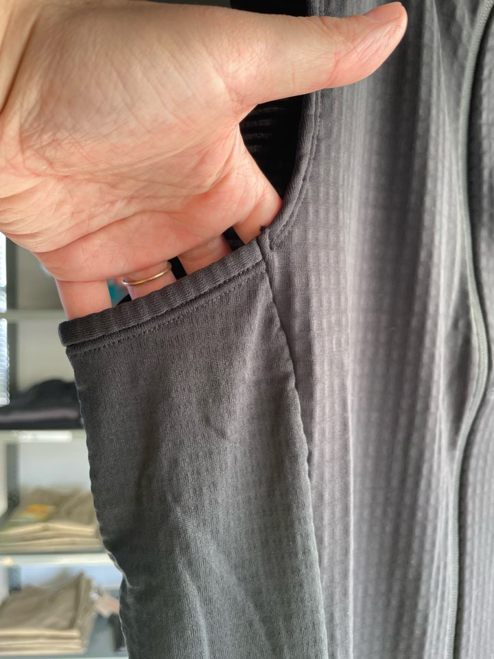 フリースですが、スケ感があるくらい生地は薄くグリット状のフリースが温めてくれて