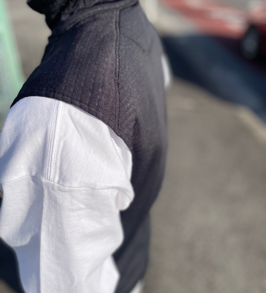 胸部と肩の保温性を高めながら、背中と脇の下の通気性を促進して余分な熱を発散するハイブリッドのデザイン