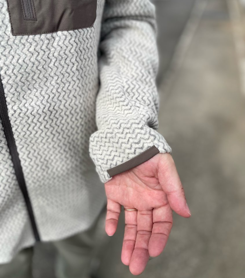 袖や裾もパイピングしてあるので熱が逃げにくく、冷気が入りずらい。