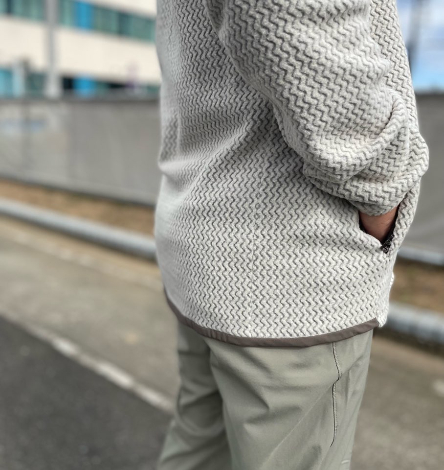 フリースなので袖入れした瞬間から暖かく、暑くなり過ぎたら勝手に熱を逃がしてくれる。。