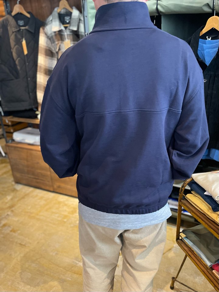 肩幅も身幅もたっぷりとゆとりを持たせ着丈は短めのリブ。