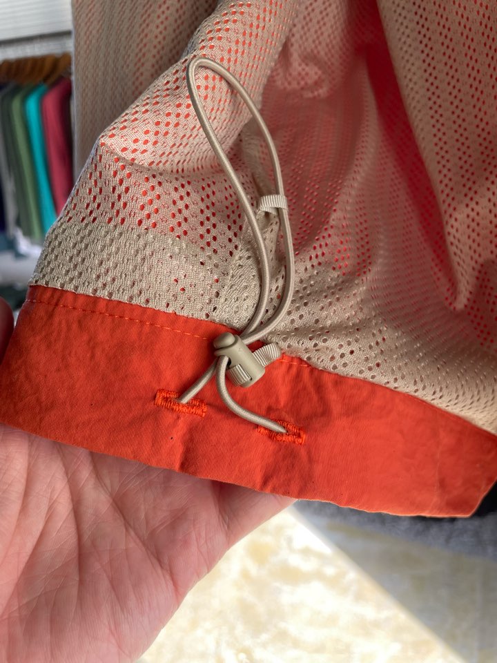 漁網をリサイクルして海洋プラスチック汚染の削減に貢献する、丈夫なネットプラス・ポストコンシューマーリサイクル・ナイロン100%のファイユを使用し、軽度の水分を弾くDWR(耐久性撥水)加工はPFASを意図的に使用せずに製造