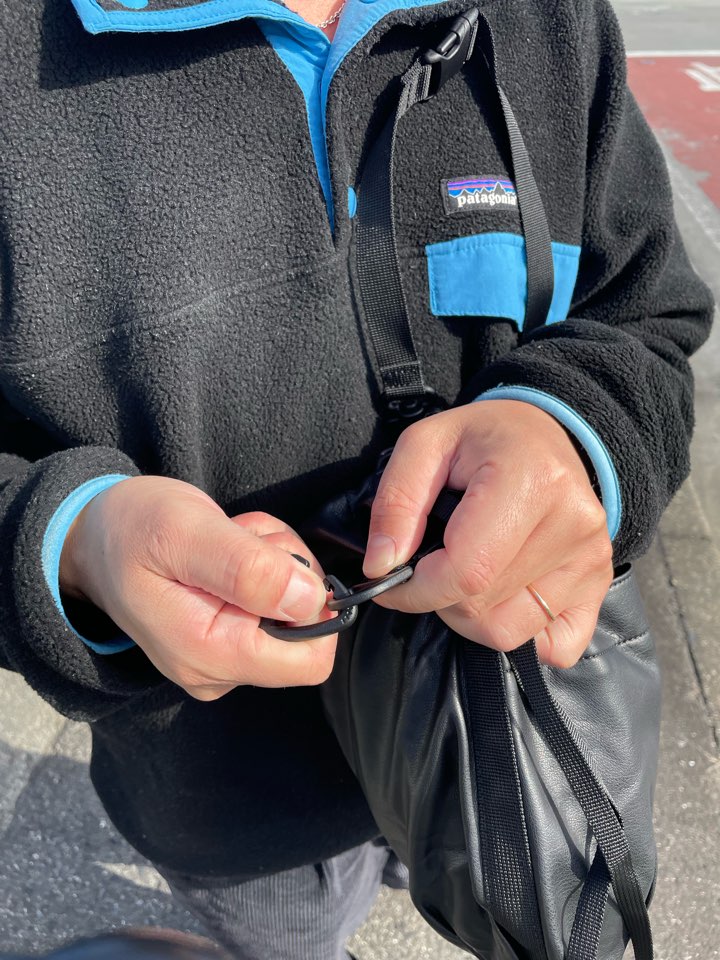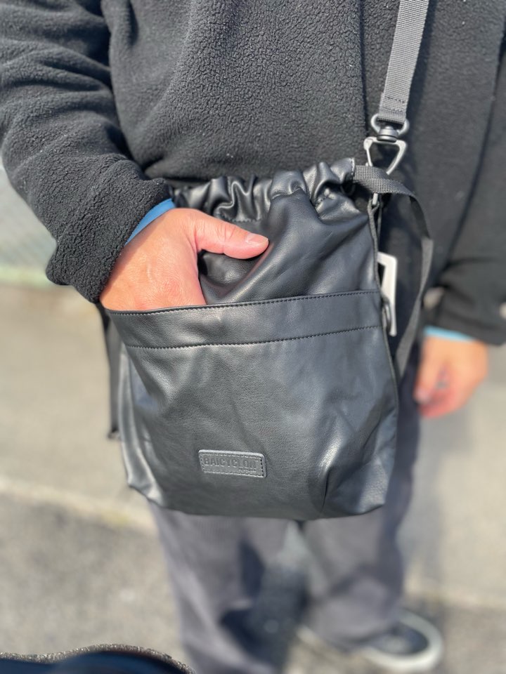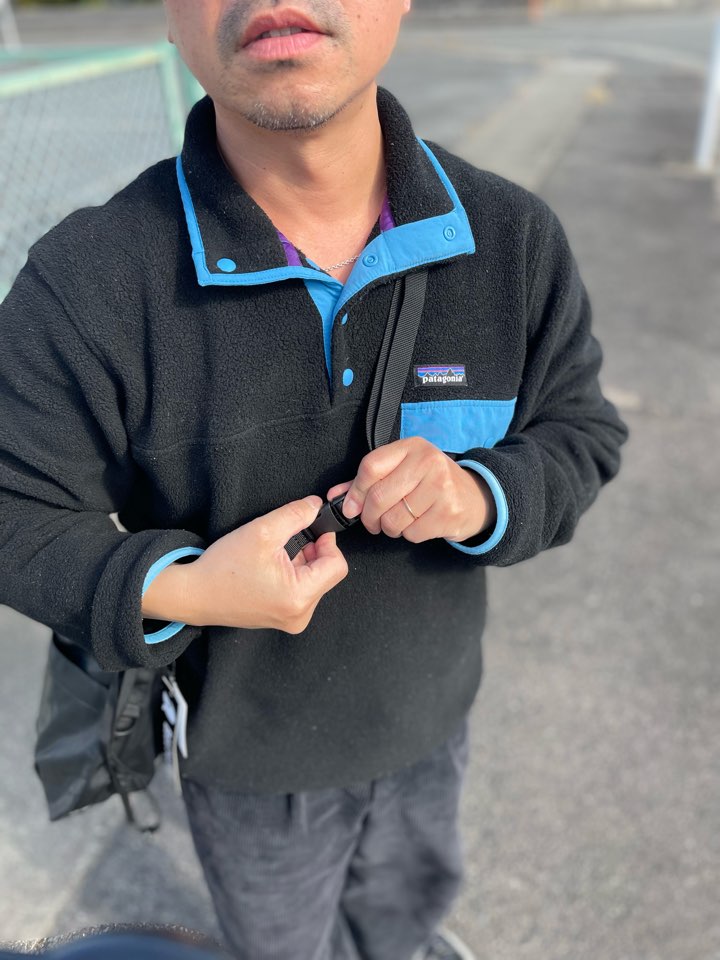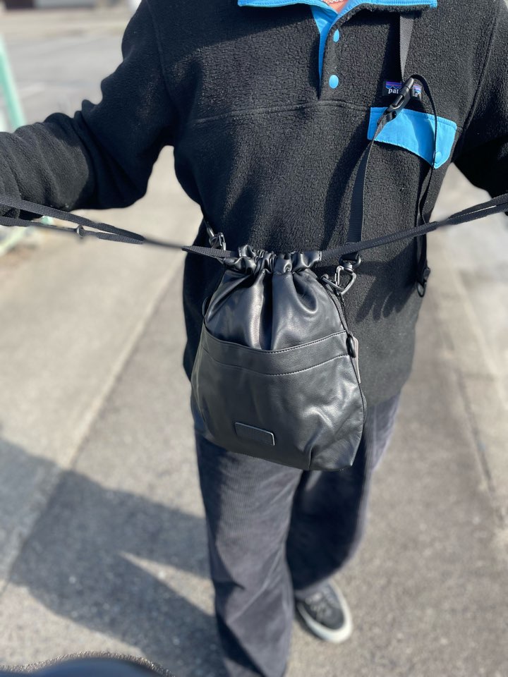 ストラップ部分も簡単にアジャストできる仕様で、口部分にスナップボタンも付いているので防犯的にも安心です。