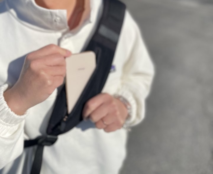 フロントポケットはマグネットバックルで出し入れはノンストレス。