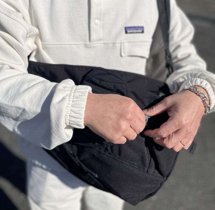 右肩でも左肩でも左右どちらでも背負えるバックル仕様。