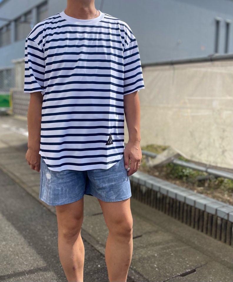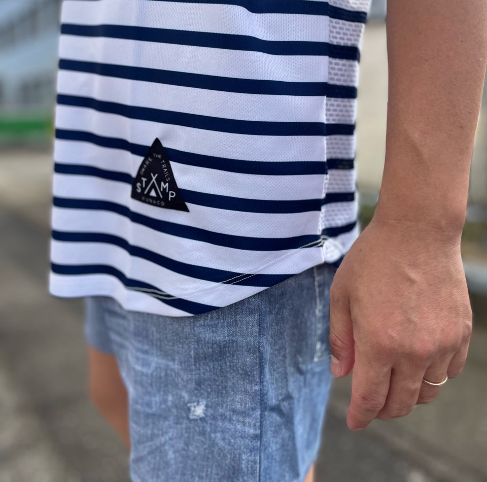 【Unisex】STAMP Run&Co | スタンプ ランアンドカンパニー STAMP Wide Tee “BORDER” – WHITE / NAVY