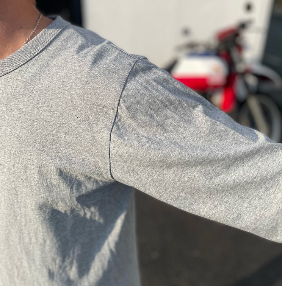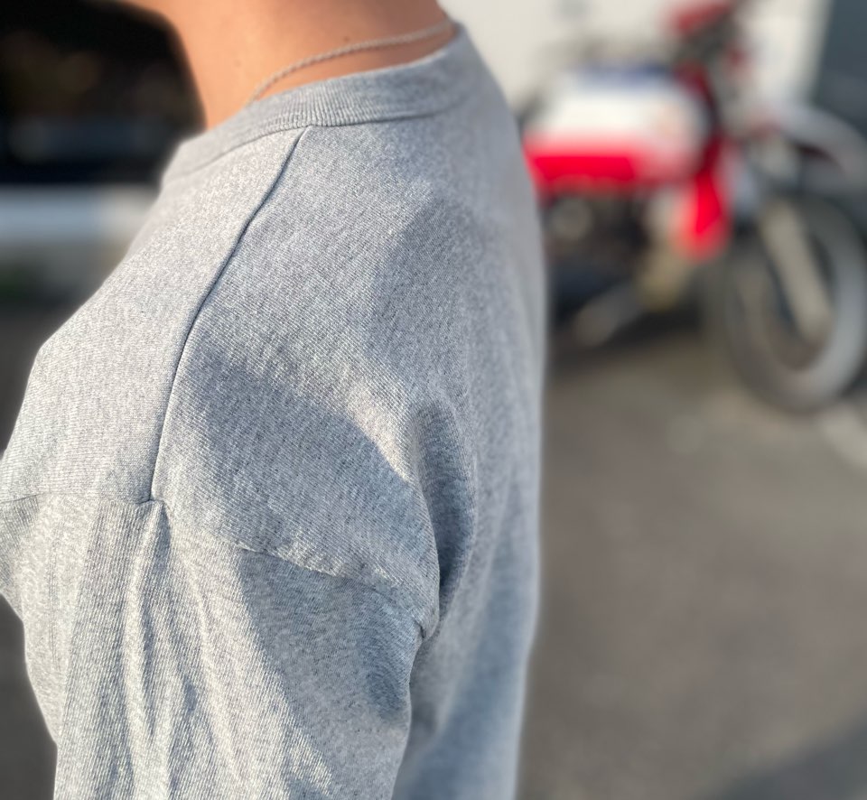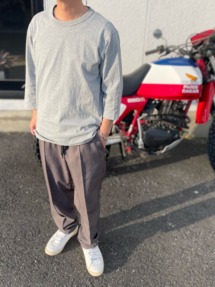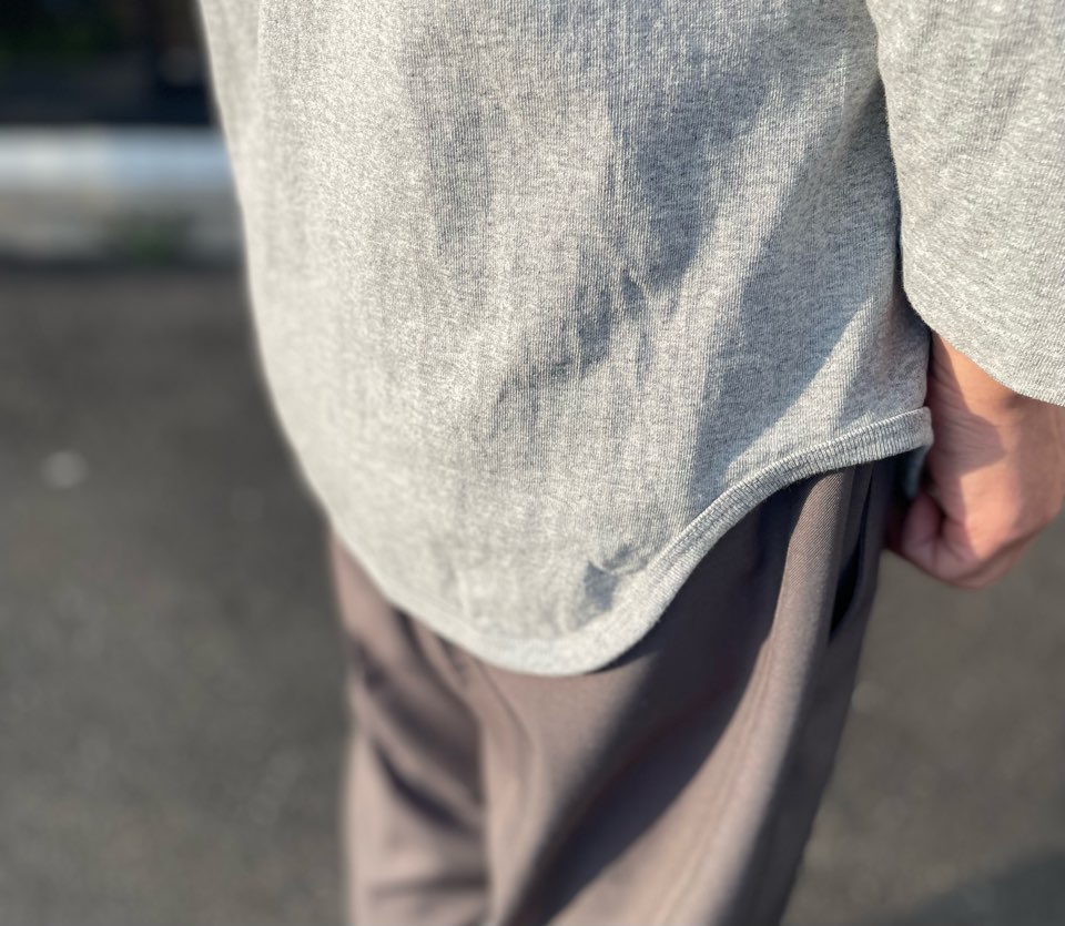 ゆったり過ぎるTシャツだと上に何か羽織った時にシルエットがダブつくんですよね。