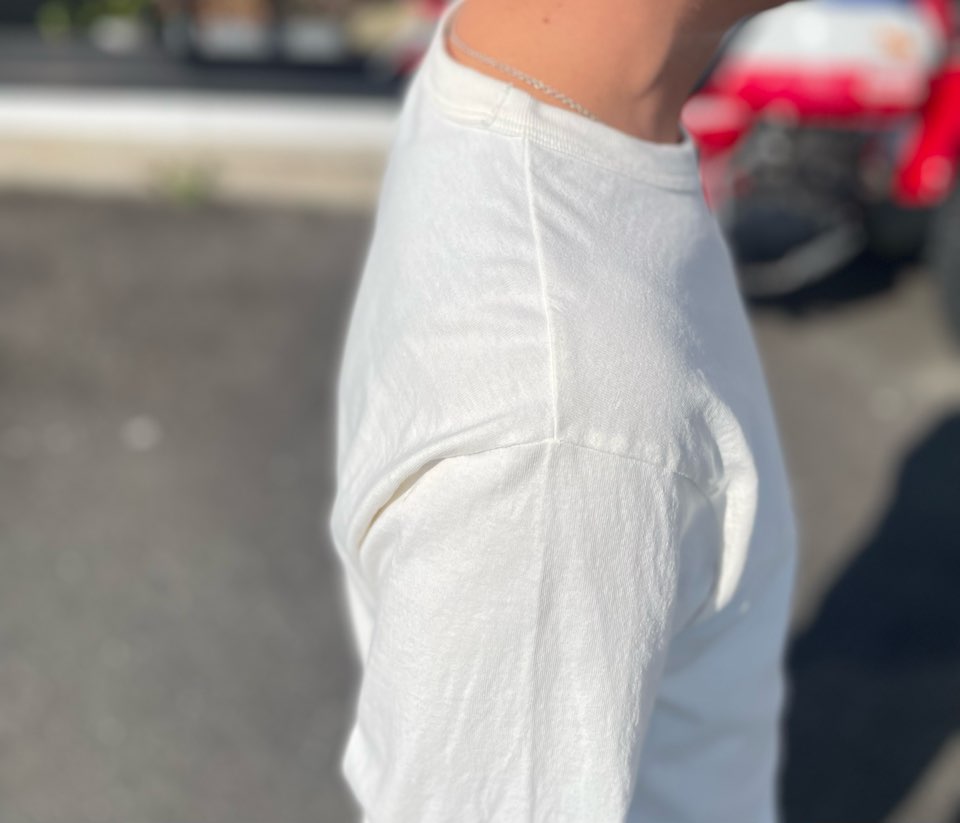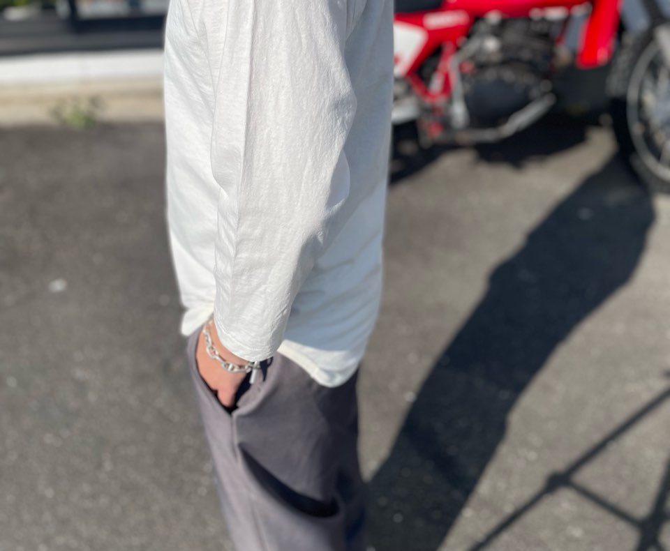 ゆったり過ぎるTシャツだと上に何か羽織った時にシルエットがダブつくんですよね。
