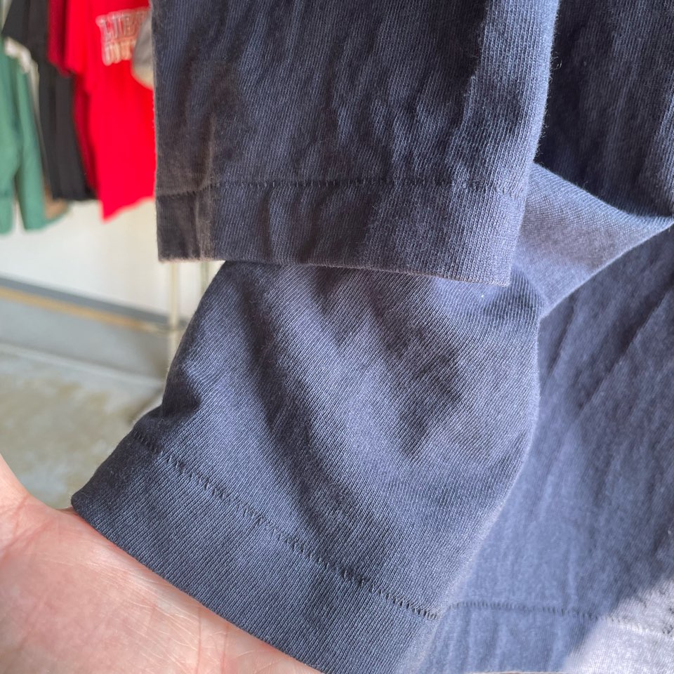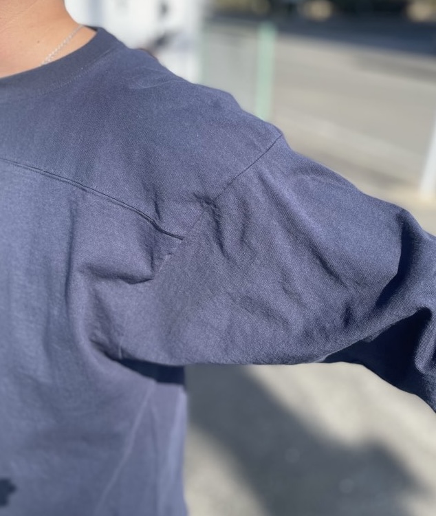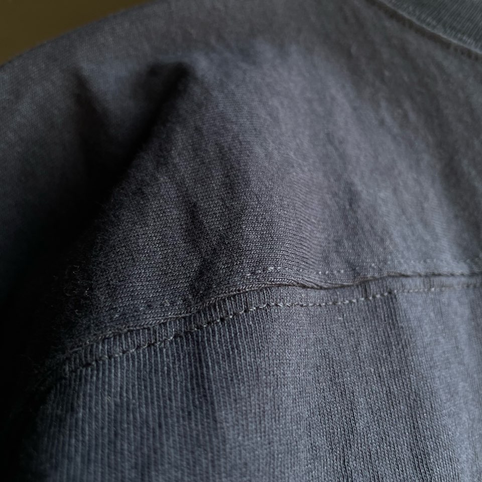 袖や裾はヴィンテージのディテールを踏襲したシングルステッチと丸胴仕上げ。