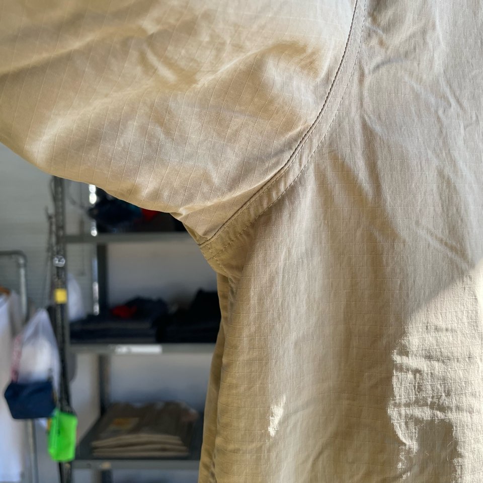 外側のシェルはナイロン100%の撥水加工済みリップストップ。
