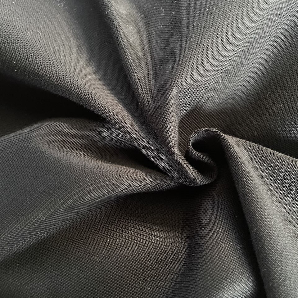 もともと毛羽の少ない糸ですが、毛羽を内側に巻き込む特殊な紡績機を使用し、最大限まで詰めて打ち込み、シルケット加工を施した生地になります。