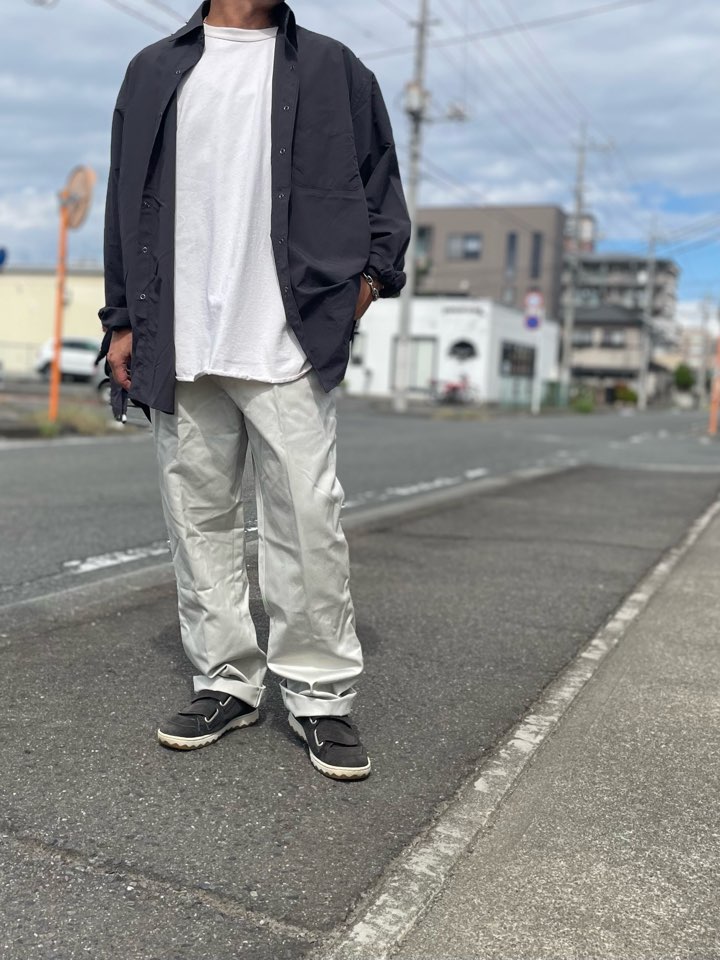 仕様も襟はレギュラーカラー、ボタンはスナップボタンと細かいディテールは変わりゆったりシルエットなので
